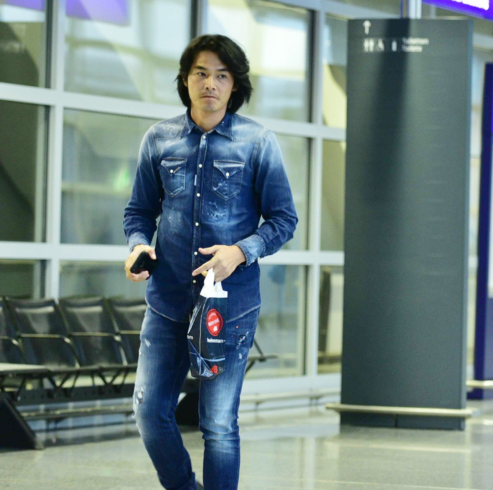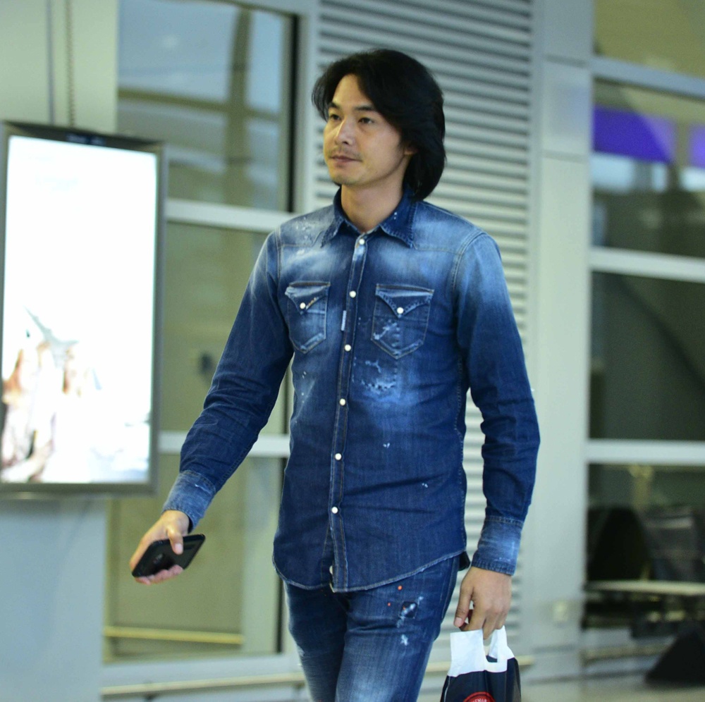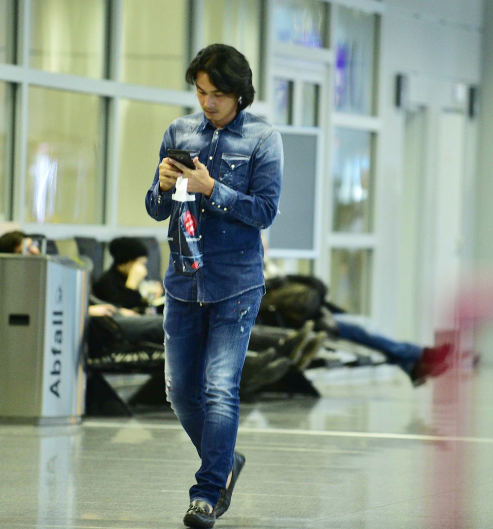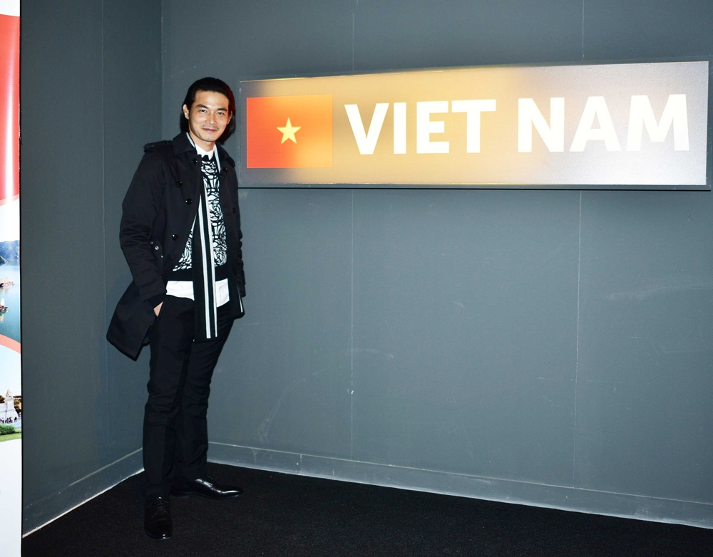 Nam diễn viên xuất hiện với gương mặt bơ phờ khi đáp chuyến bay đến đất nước hình chiếc ủng hôm 12/1 dự Tuần lễ phim Việt.