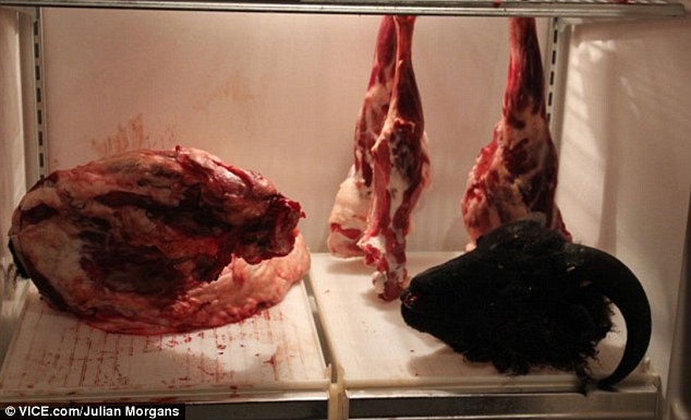 | Để có thức ăn, Derek Nance thịt động vật mà anh mua được ở tầng hầm, và cất giữ phần thịt còn lại vào tủ lạnh. |