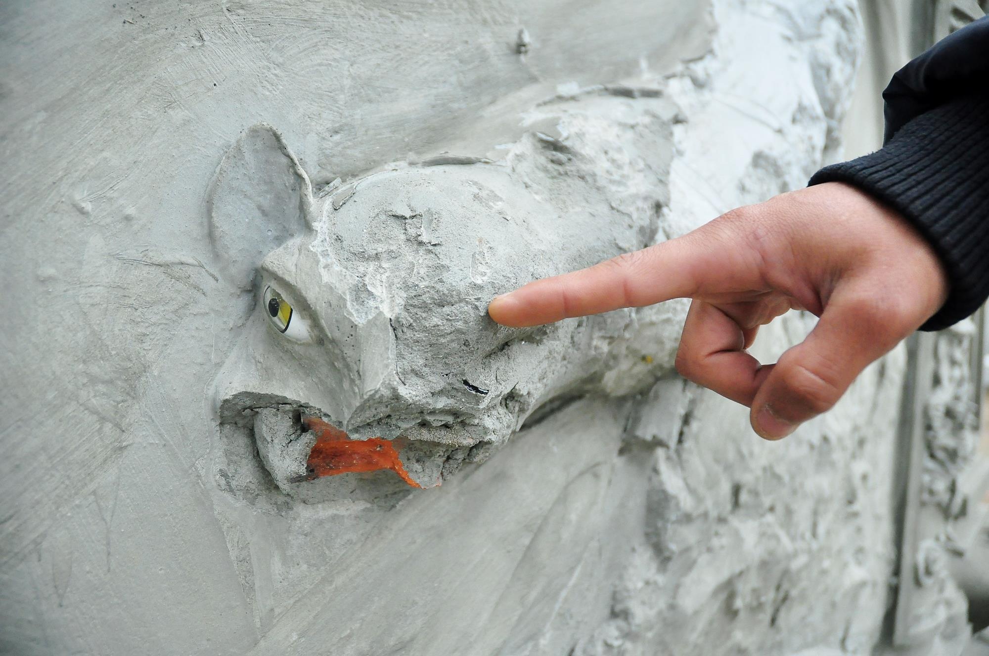 | Con “quái thú” mà đơn vị thi công cho là hổ đã bị đục nham nhở phần đầu, sườn và hai chân. |