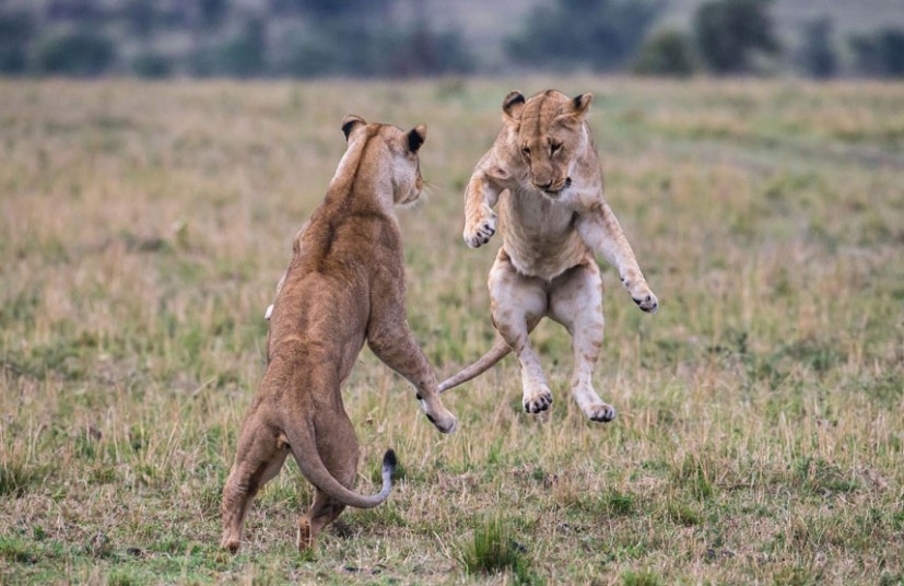 Nhiếp ảnh gia động vật hoang dã Paul Goldstein chụp vũ điệu của những con sư tử tại Masai Mara, Kenya. Ảnh: Getty |