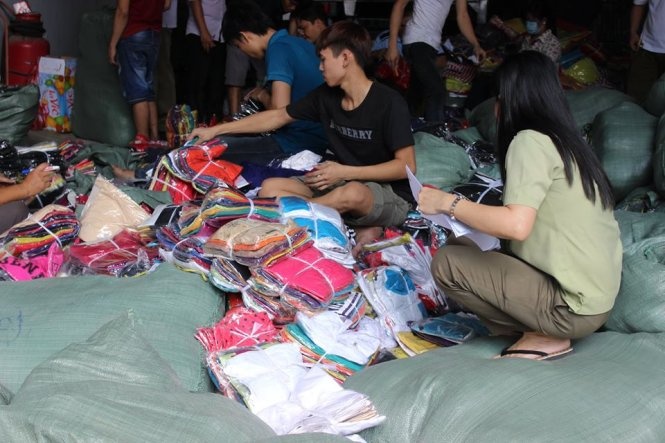 Quần áo giả mạo các thương hiệu ngoại bị phát hiện tại một cơ sở ở Q.12, TP HCM . |