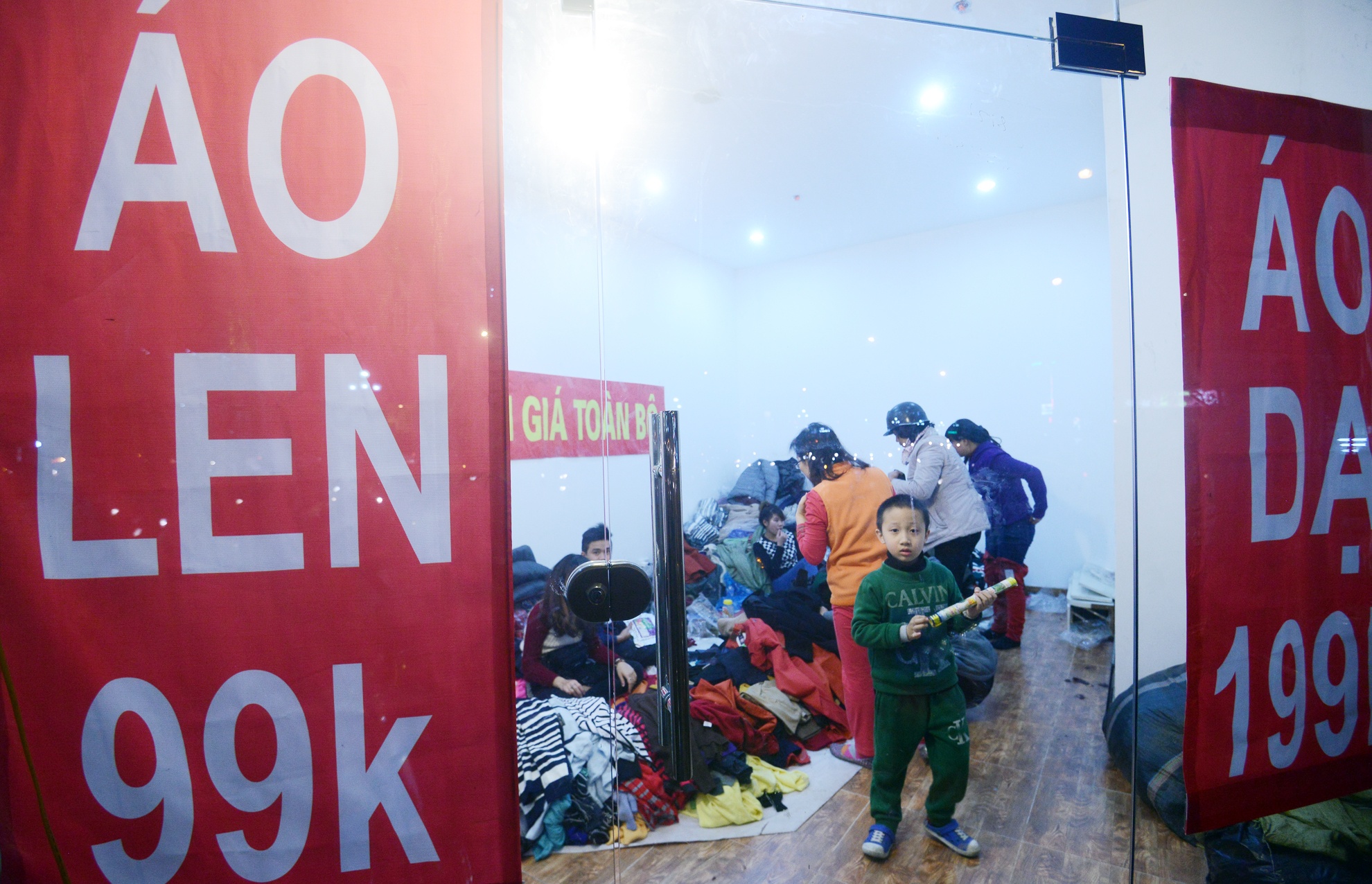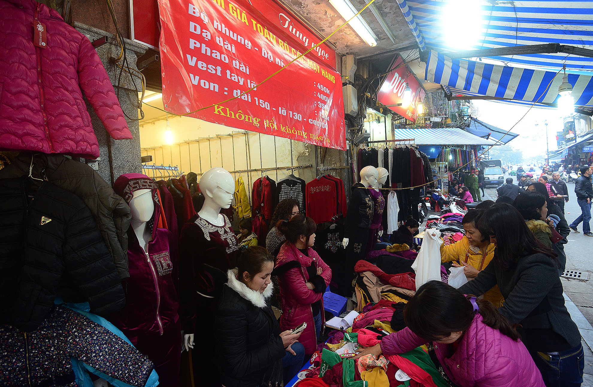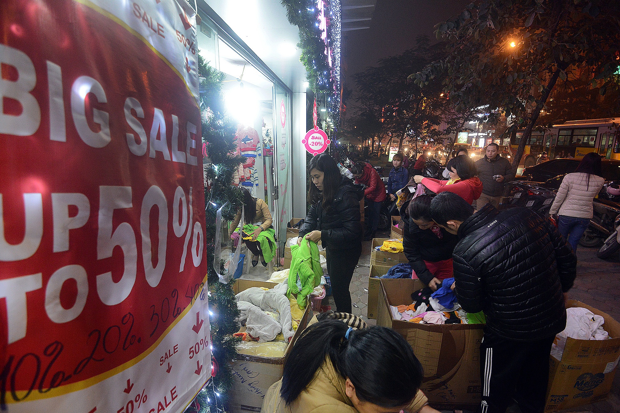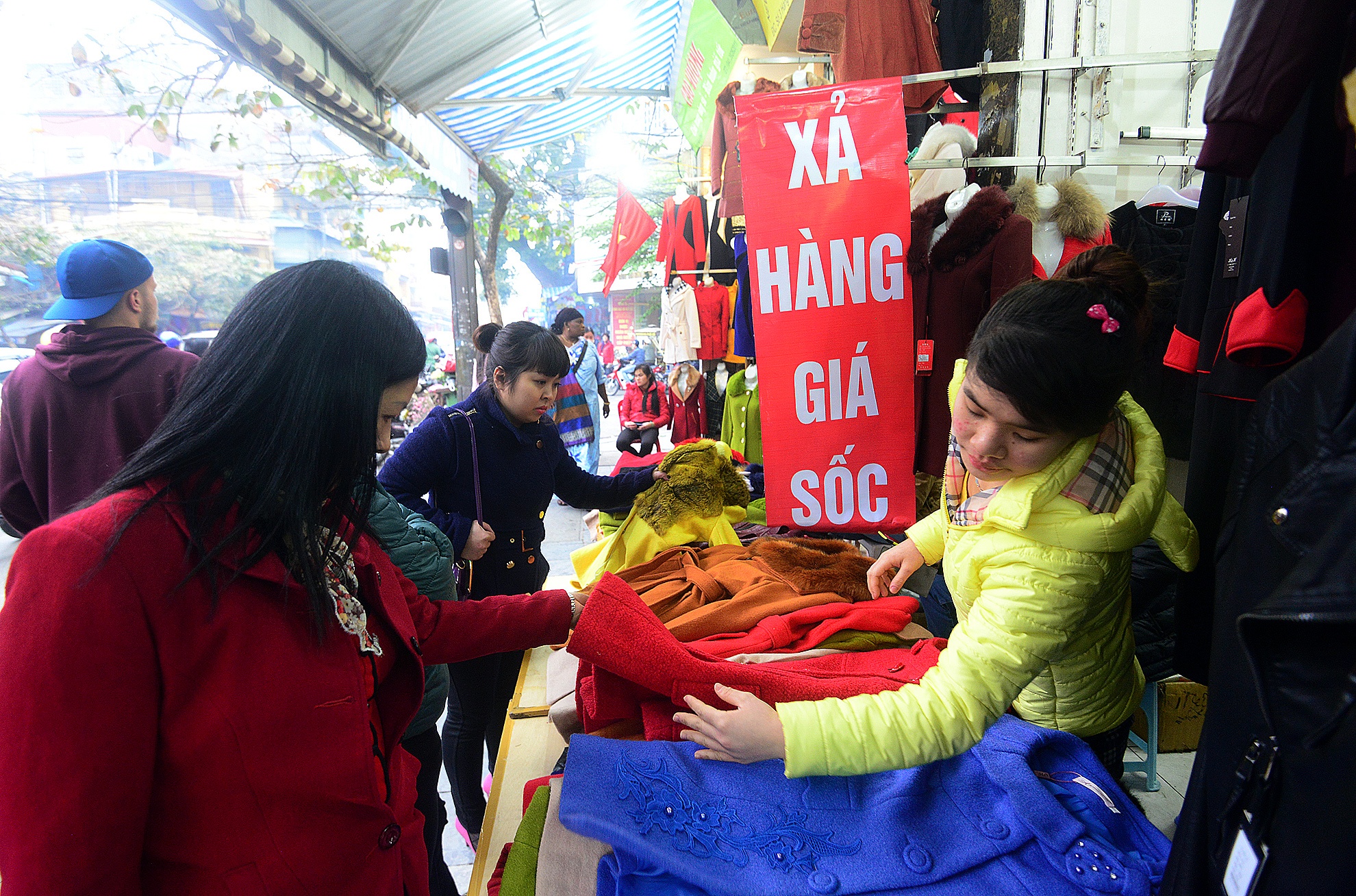 Giáp Tết, nhiều cửa hàng thời trang ở Hà Nội tranh thủ bung hàng bán giảm giá. Phố Chùa Bộc là một trong những điểm thu hút đông khách trẻ mua sắm. Nhiều cửa hàng cùng treo bảng giảm giá các loại quần áo từ 30 -50%.