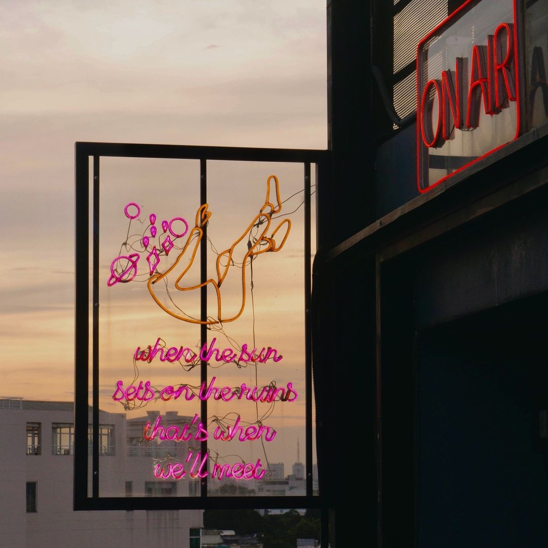 Không gian The Rec mang phong cách cyberpunk với những ánh đèn neon huyền ảo màu xanh, tím chủ đạo. Quán bar này dành cho các cặp đôi đang tìm điểm hẹn hò ngoài trời, ngắm nhìn thành phố từ trên cao.
