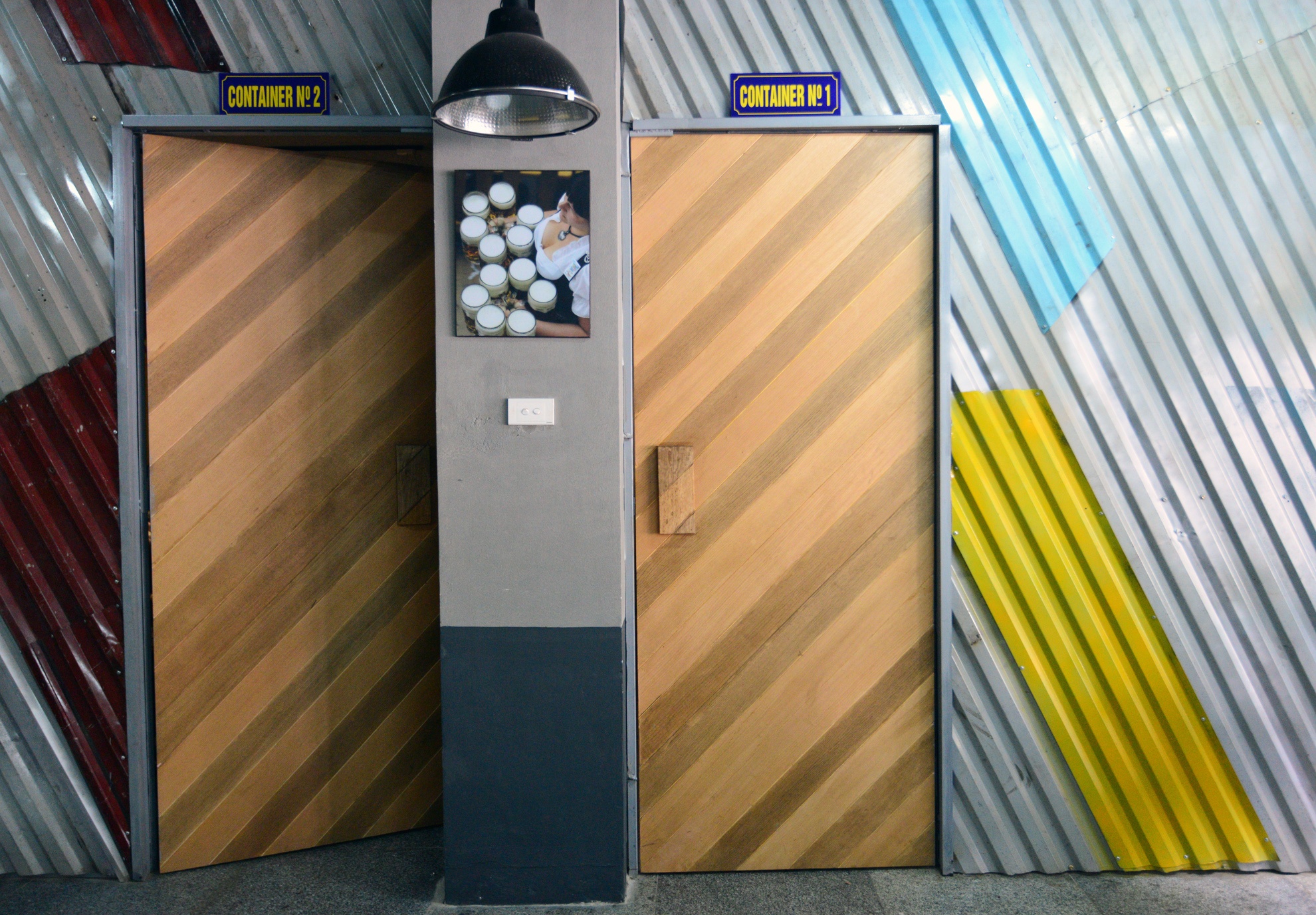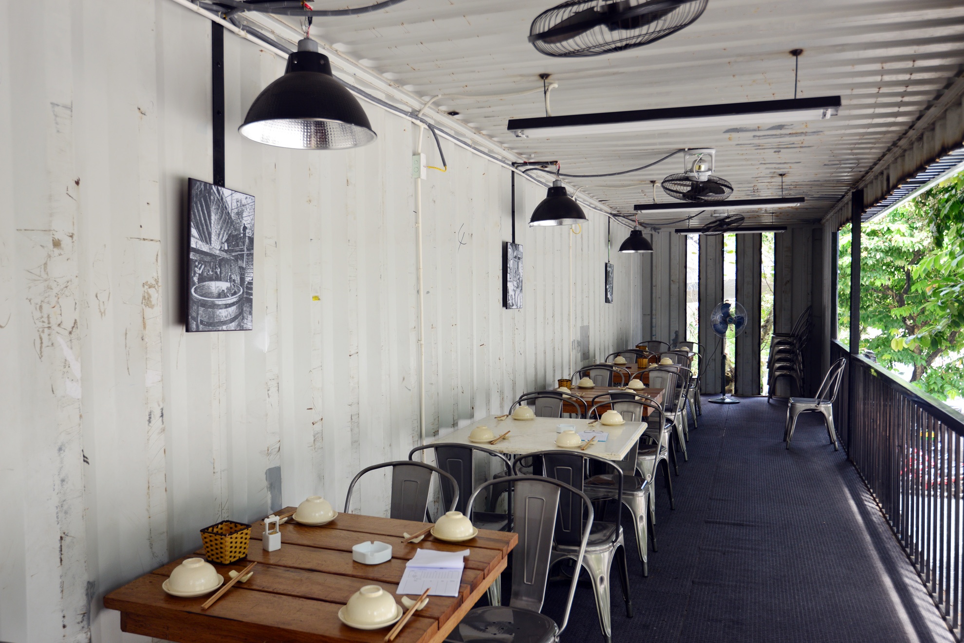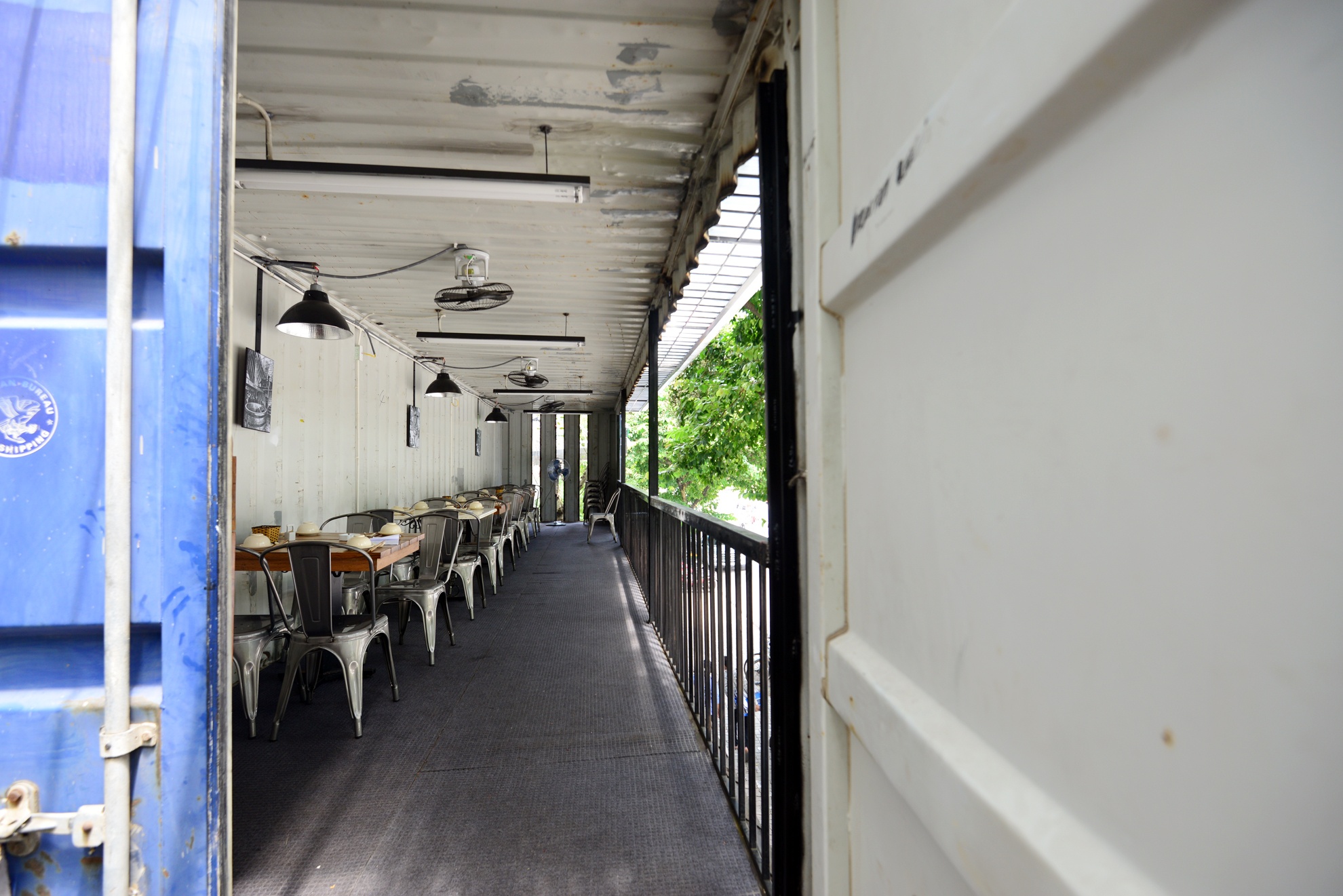 | Những chi tiết chữ, số in trên container tạo ra vẻ tự nhiên cho nhà hàng. |