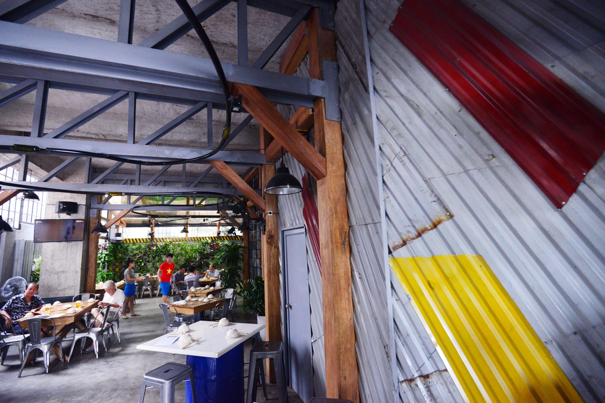 Thùng container cũ kèm theo tấm lợp tôn han gỉ, ống sắt… đã tạo nên kiến trúc khác biệt cho một nhà hàng tại thủ đô.
