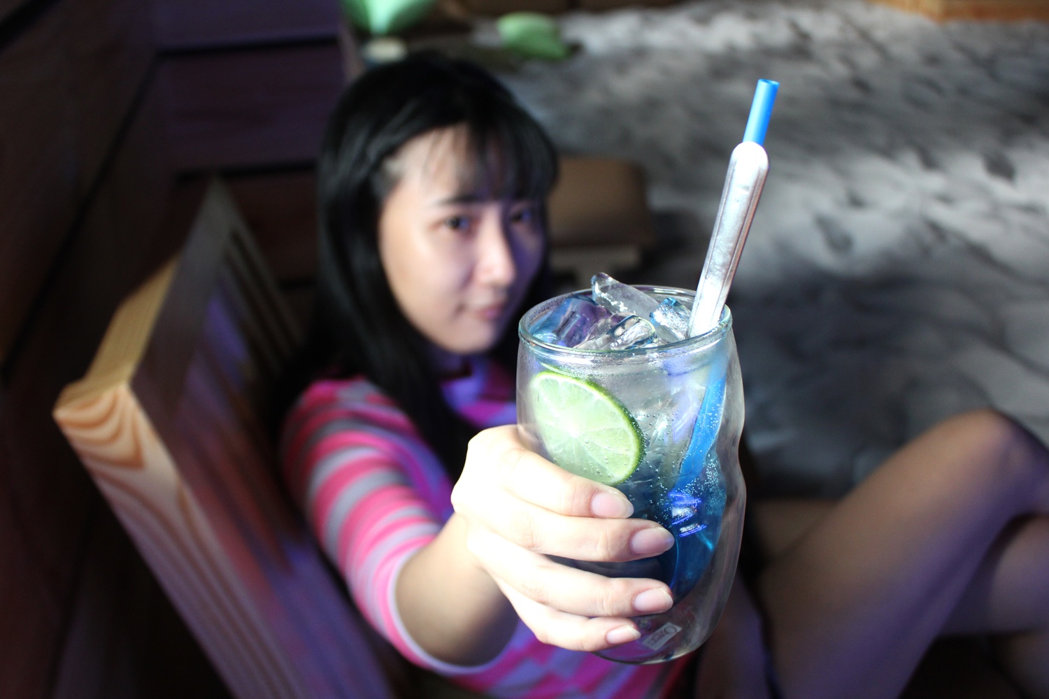 | Những chiếc ghế tựa giúp khách hàng thoải mái như đang ngồi trên bãi biển. Ngọc Yến (quận 3) - một khách hàng - cho biết: "Ấn tượng lần đầu tiên là không gian đẹp, với bãi biển ngay trong nhà nhìn rất lạ mắt, lại khá yên tĩnh do ít khách. Phòng này chỉ có 12 chỗ ngồi luôn kín khách nên mình phải gọi điện đặt chỗ trước khi đến". |