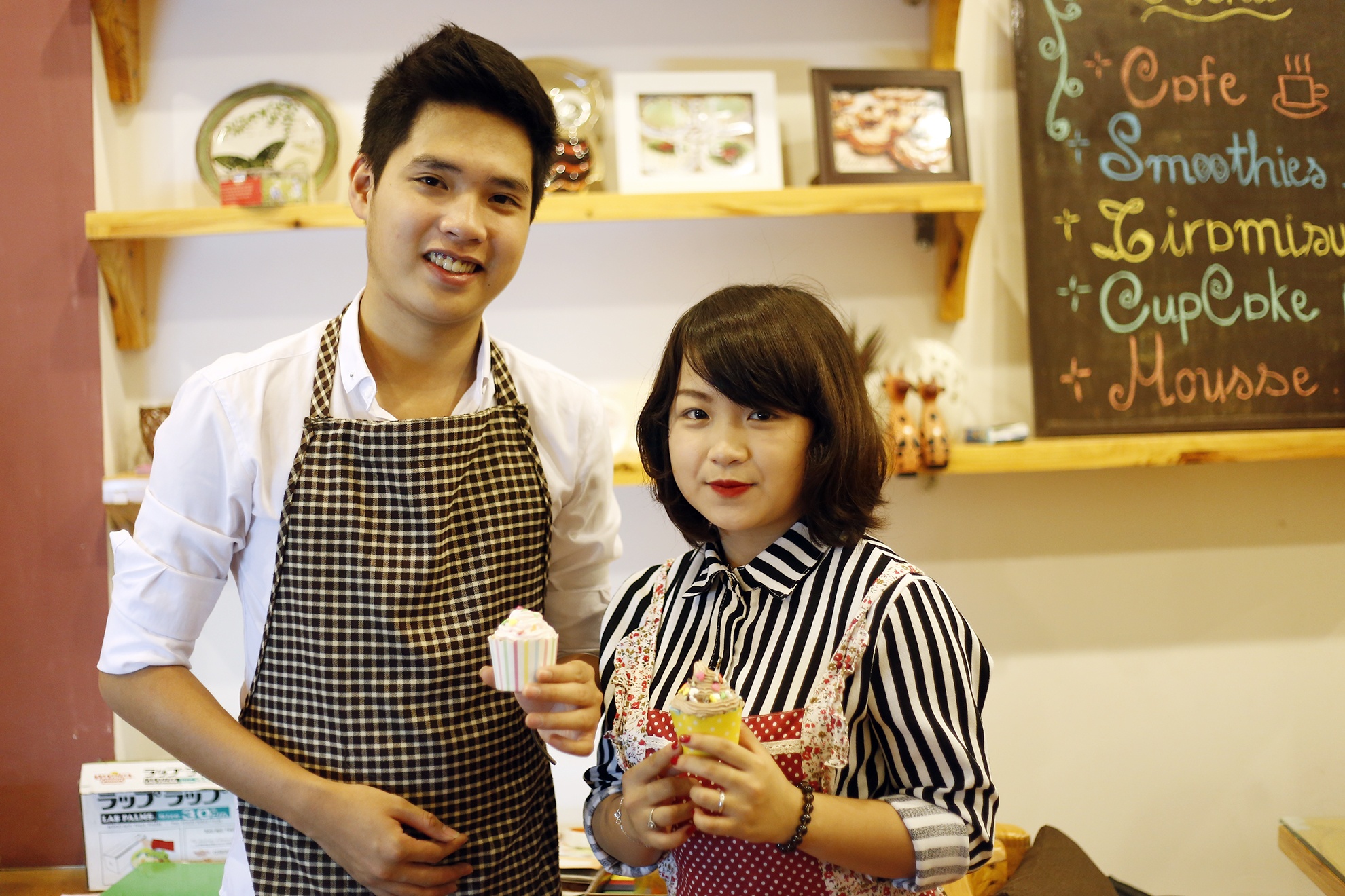Chỉ cần bỏ ra 40.000 đồng, nhiều bạn trẻ Hà thành có thể đến quán này để tự làm bánh cho mình và thưởng thức cà phê.