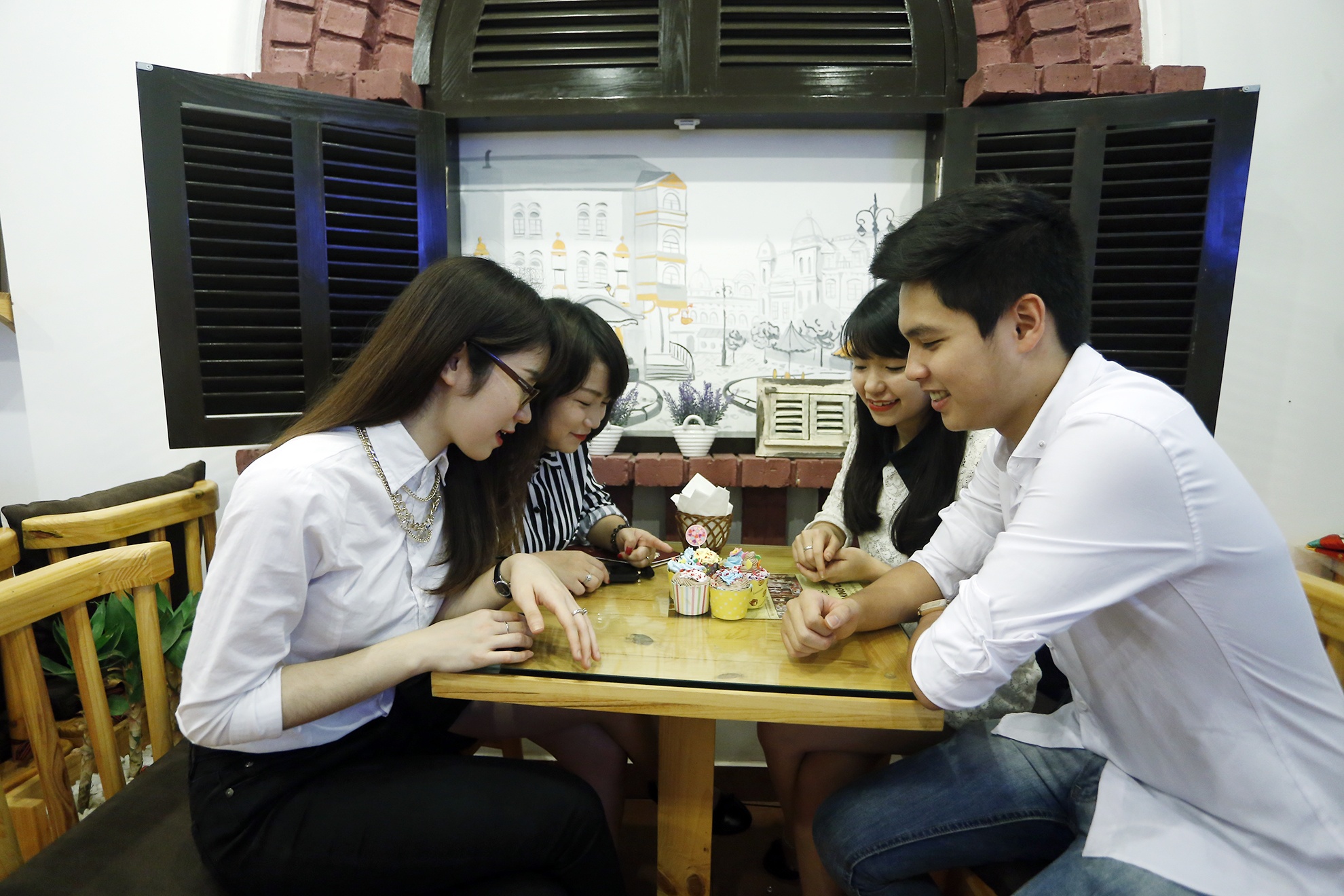 | Khách hàng của quán cà phê độc đáo này phần lớn là các bạn trẻ. |