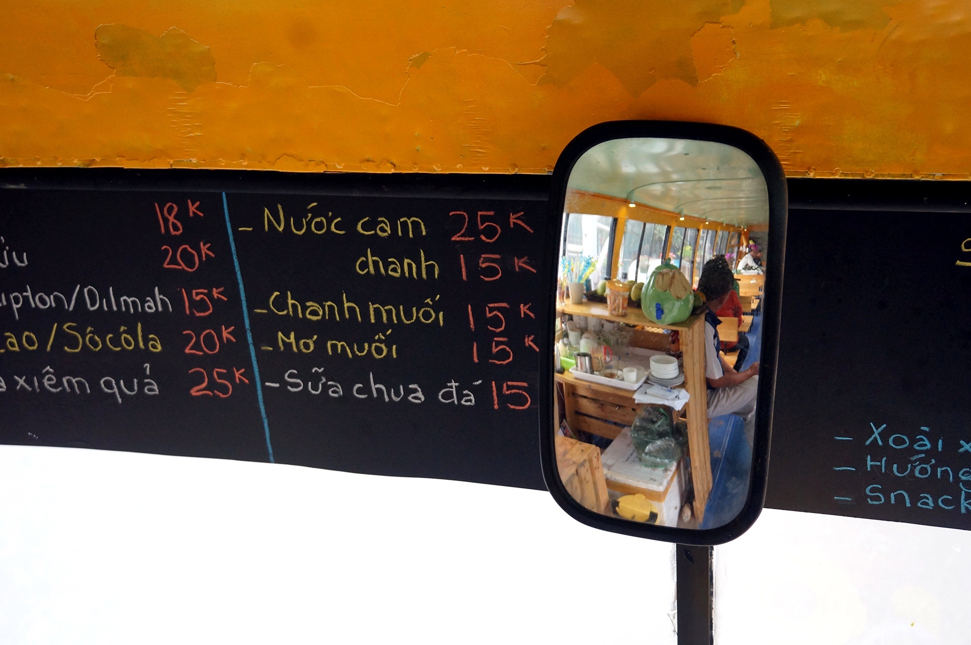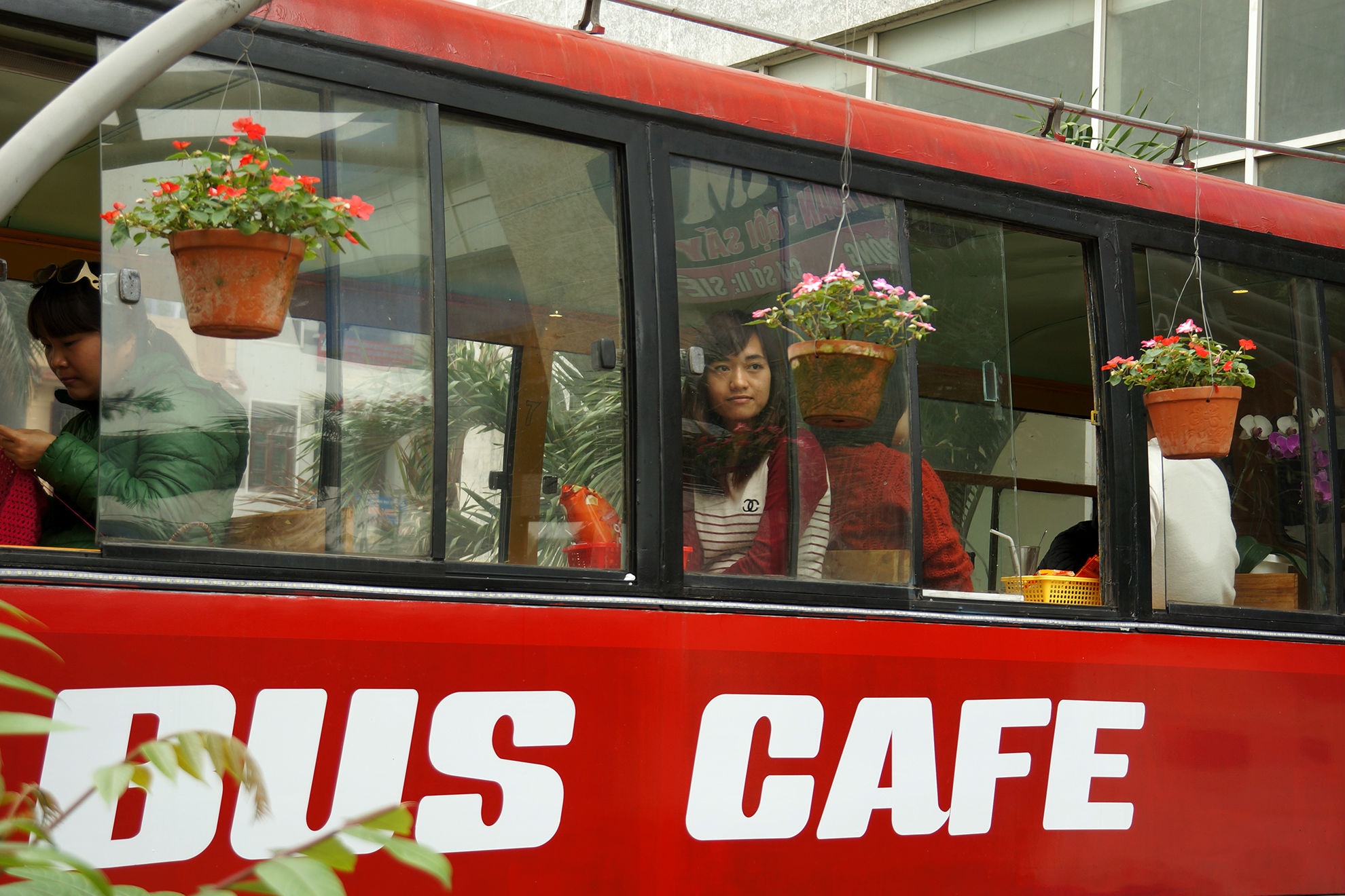 Quán cà phê trên xe bus mới khai trương nằm trong khuôn viên bãi đỗ xe của một siêu thị trên đường Nguyễn Trãi (quận Thanh Xuân, Hà Nội). Đây thực chất là một chiếc xe 48 chỗ ngồi cũ, đã tháo động cơ, chỉ còn vỏ.