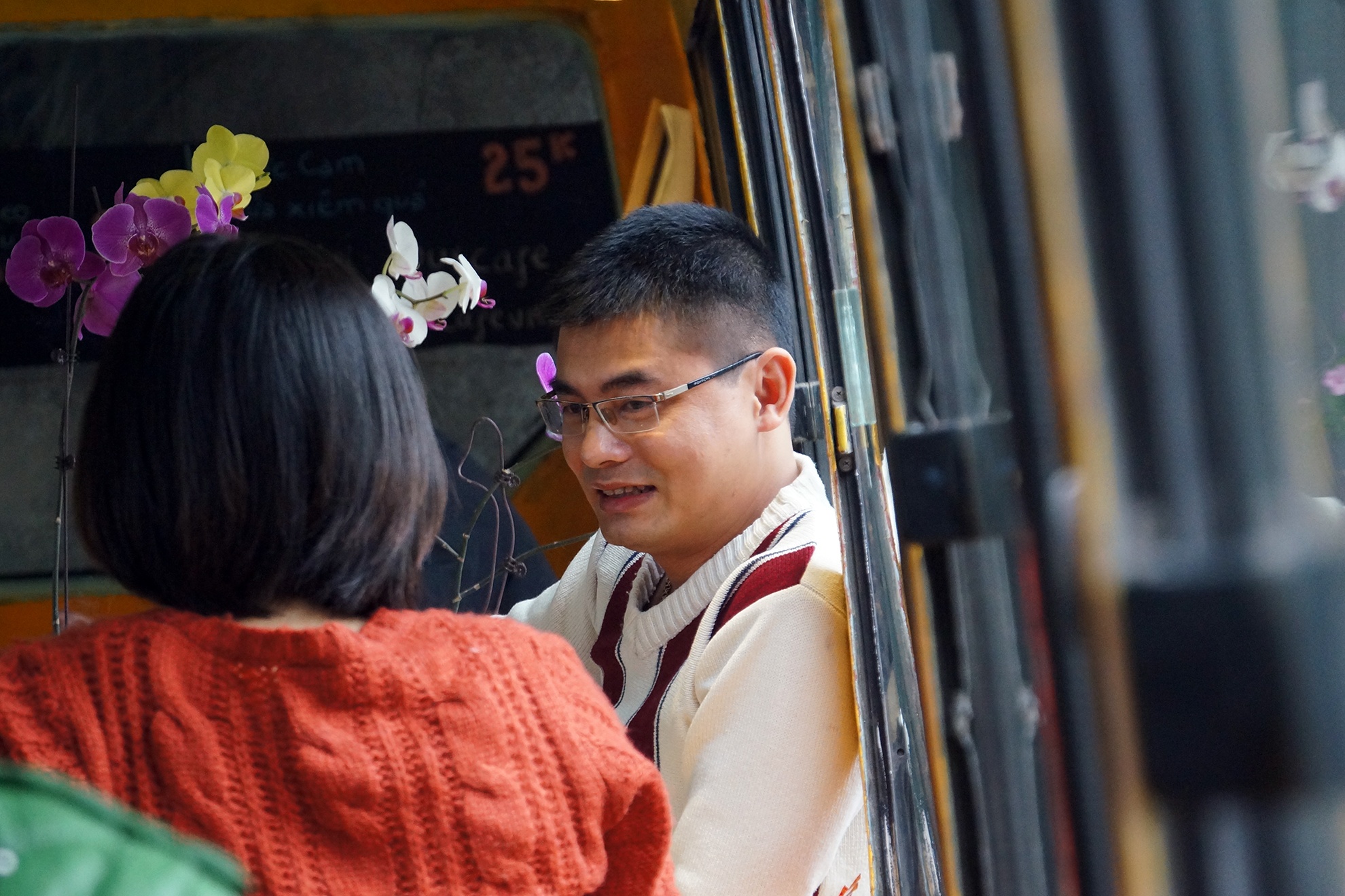 Bên ngoài xe được trang trí bằng những chậu hoa treo vừa làm mát không gian, vừa giúp tầm nhìn của khách trở nên sinh động hơn.