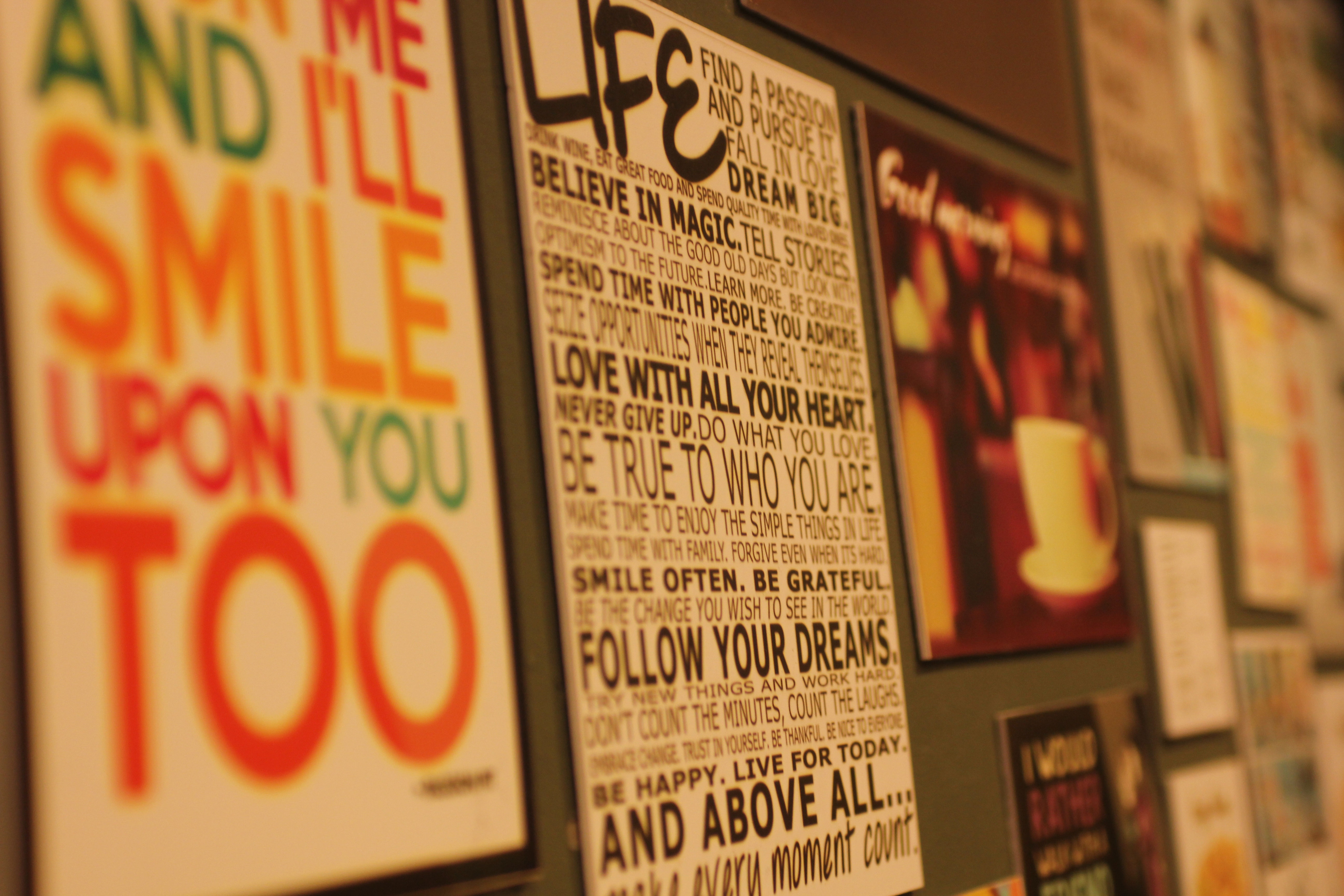 Những bức tranh trang trí bằng tiếng Anh, tạo không gian học cho học viên và khách ngồi uống nước. Vừa thưởng thức đồ uống, học viên và khách hàng đến quán còn được nghe nhạc, đọc sách và giao tiếp.