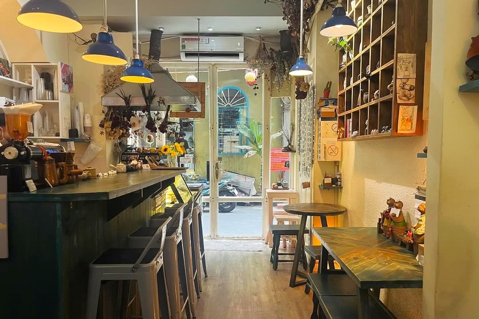 Quán cà phê - bánh ngọt này có diện tích chỉ 35 m2, đủ kê vài bàn nhỏ. Phần lớn không gian dành cho quầy pha chế. Quán phục vụ đồ uống và bánh ngọt với mức giá 55.000-100.000 đồng. Một số món đặc trưng gồm ssanghwacha (trà thảo mộc đậm vị), trà jujube, latte khoai lang/bí ngô cùng nhiều loại bánh như crepe, tiramisu, red velvet...
