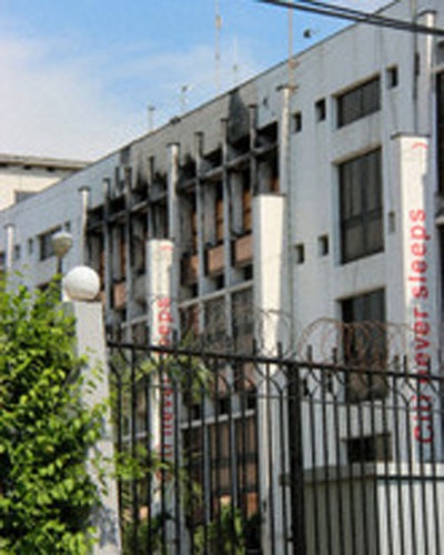| Trụ sở đại sứ quán Nhật Bản ở Kinshasa bị cháy ngày 20/6. Ảnh: Kyodo |