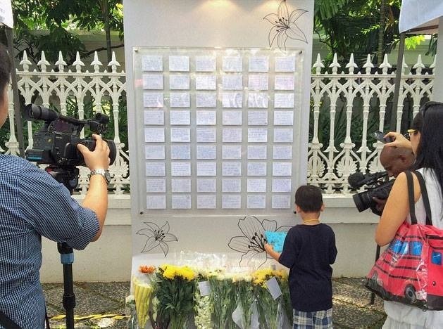 | Tính tới 17h30 ngày 23/3, người dân Singapore đã viết hơn 11.000 thiệp chia buồn. Họ đặt chúng tại khu tưởng niệm ở dinh Istana. |