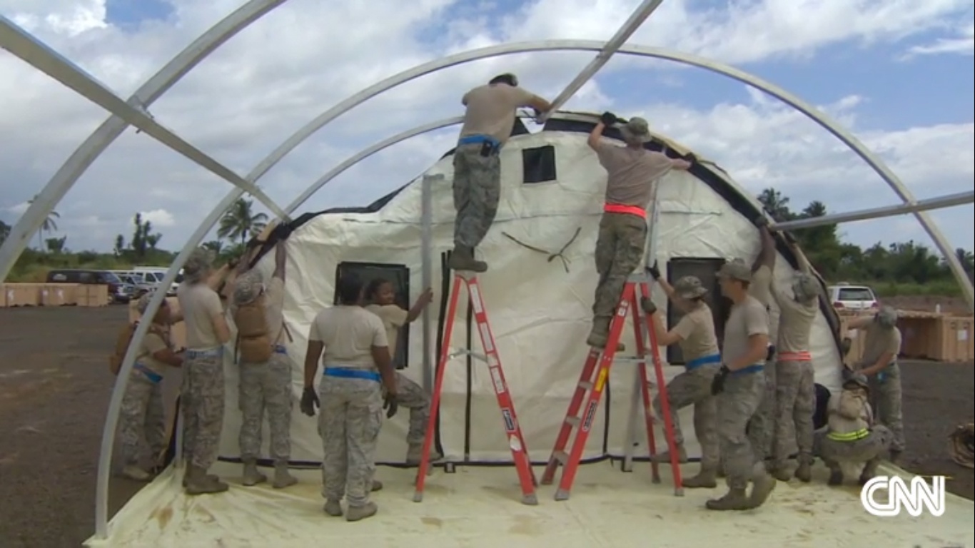 Ngay sau khi đáp xuống Monrovia, đội ngũ chuyên gia Mỹ sẽ xây dựng khu lều đặc biệt dành cho các bệnh nhân Ebola. Họ cũng dựng thêm các phòng xét nghiệm để tạo điều kiện thuận lợi cho người dân kiểm tra sức khỏe. Hiện tại, Liberia chỉ có 4 phòng xét nghiệm Ebola nhưng số trường hợp nhiễm bệnh được xác nhận đã cán mốc 1.000. Ảnh: CNN