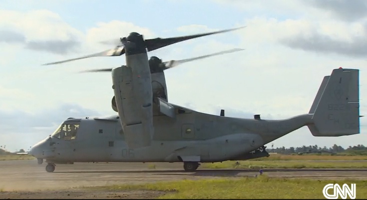 Hai máy bay V-22 Osprey đưa một phần nhóm chuyên gia của quân đội Mỹ tham gia chiến dịch ngăn chặn Ebola tới Liberia từ Senegal. Họ sẽ hỗ trợ các tổ chức quốc tế trong nỗ lực ngăn chặn dịch bệnh tồi tệ nhất nhiều thập kỷ qua. Ảnh: CNN