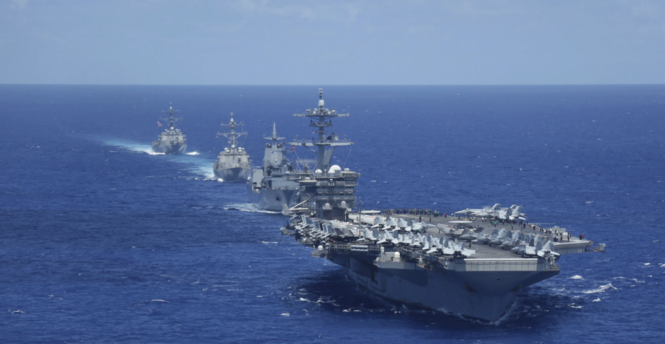 Tính đến thứ Tư, Lầu Năm Góc đã thiết lập sự hiện diện quân sự áp đảo tại Trung Đông với tàu sân bay USS Abraham Lincoln, 9 tàu khu trục và 3 tàu chiến ven biển. Một quan chức Mỹ tiết lộ với AFP rằng "siêu mẫu hạm" lớn nhất thế giới USS Gerald R. Ford cũng đang từ Đại Tây Dương cấp tập tiến vào khu vực.