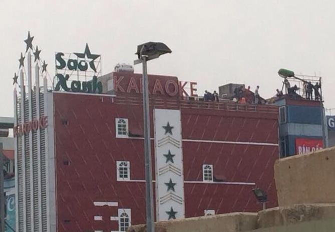 | Nhiều khách tháo chạy lên tầng thượng sang nhà kế bên quán hát Sao Xanh để tìm cách thoát thân. |