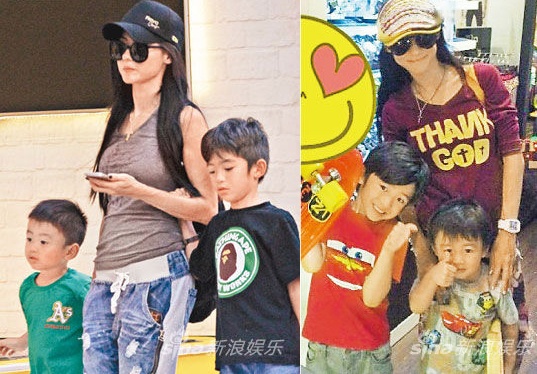 | Trương Bá Chi và 2 cậu con trai đáng yêu. |