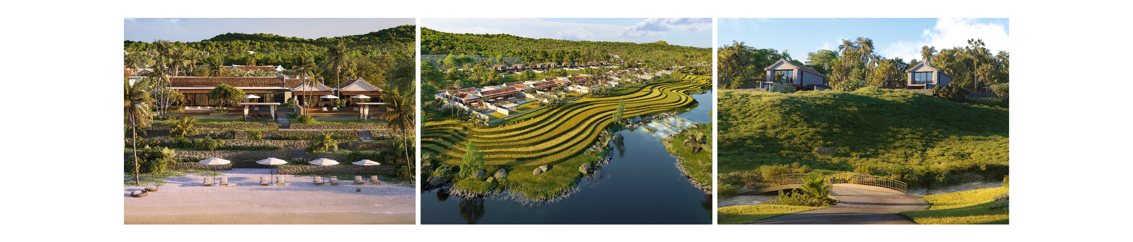 Đời sống thường nhật của nền văn minh lúa nước với nhiều tiểu vùng văn hoá khác nhau trên dải đất chữ S, cùng âm hưởng cuộc sống chài lưới của ngư dân Phú Quốc đều được gửi gắm qua những chất liệu như gốm, sơn mài, mây tre đan, chạm khắc đồng. Tác phẩm hội họa và điêu khắc của các nghệ sĩ đương đại danh tiếng được đưa vào từng dinh thự, hài hoà với đường nét kiến trúc, góp phần làm giàu thêm trải nghiệm mỹ cảm của chủ nhân.