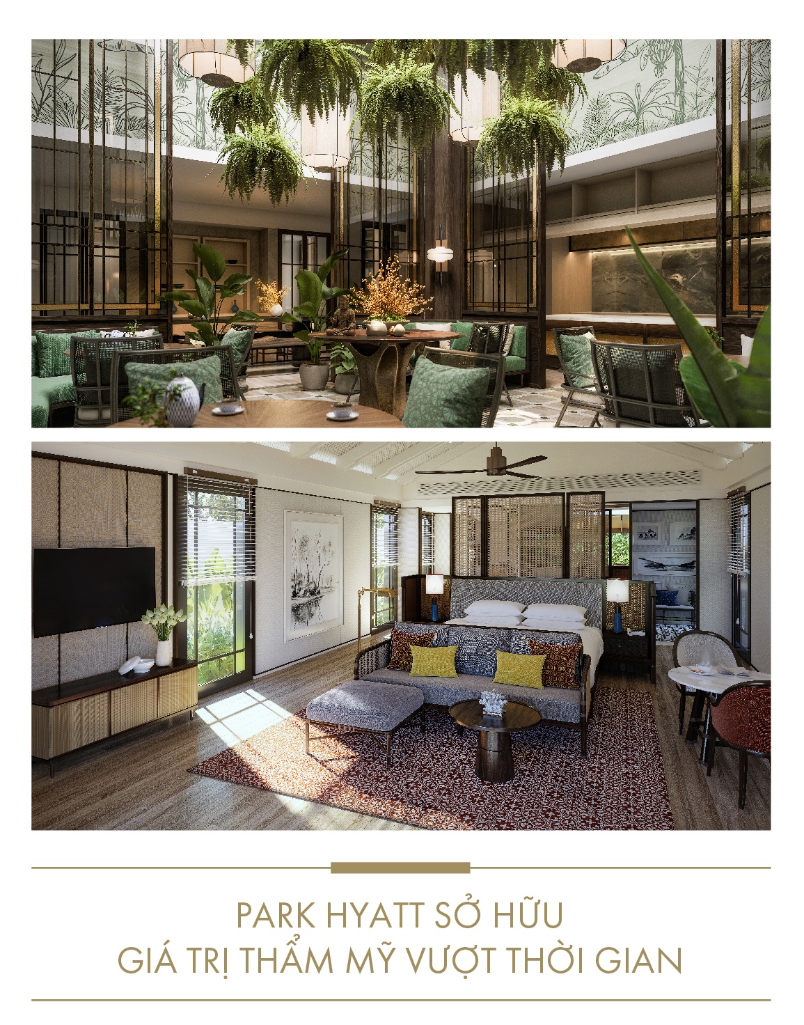 Trong khi đó, các dinh thự có cấu trúc nhà chữ Đinh, mái đầu đao, ngói lợp âm dương, hàng hiên đón ánh sáng tự nhiên. Cấu trúc này cho phép đơn vị vận hành tối ưu hóa khả năng khai thác phòng linh hoạt (lock-off). Yếu tố đối lưu không khí được đề cao nhằm đưa nguồn không khí mát lành từ đại dương vào từng căn dinh thự. Không chạy theo những thiết kế hào nhoáng, hệ giá trị nghìn đời của văn hóa Việt pha trộn tinh thần đương đại góp phần đưa kiến trúc của Park Hyatt Phu Quoc Residences đạt giá trị thẩm mỹ cao.