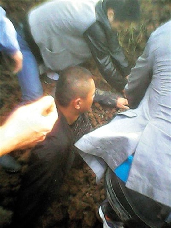 Những xe tải lập tức đổ đất lên người 5 công nhân, người bị chôn toàn thân, người bị đất phủ đầy đầu. Trong khoảng nửa giờ đồng hồ, quản lý công trường và các công nhân khác mới kéo được 5 công nhân này ra khỏi đống đất.