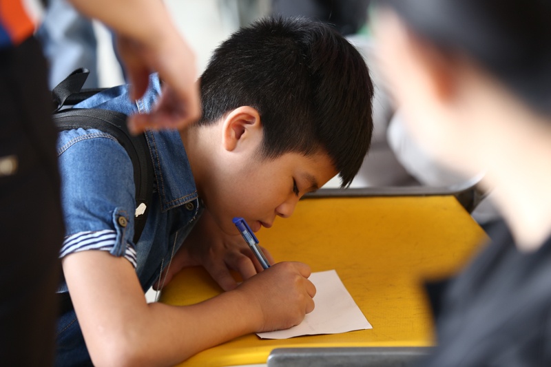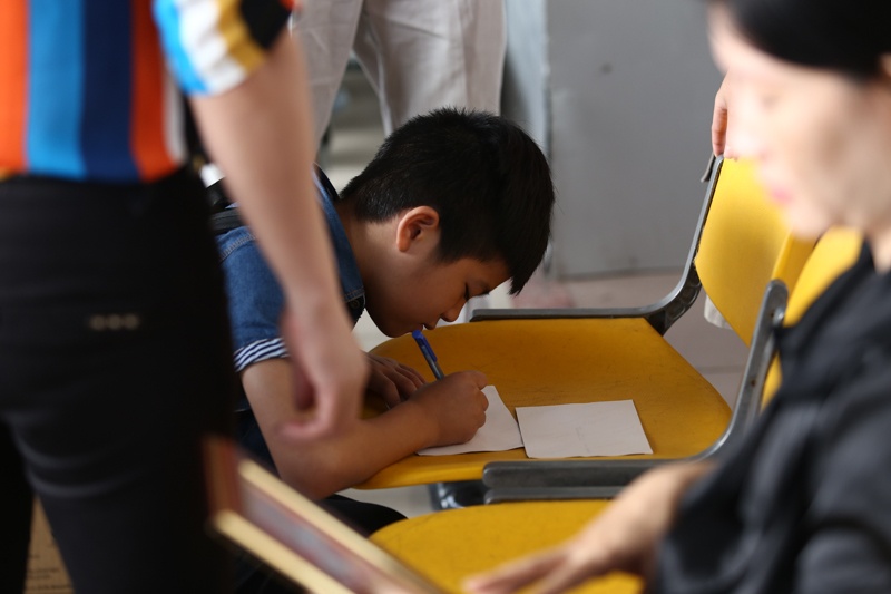 Khi được đề nghị, Quang Anh quỳ ngay trên mặt đất và kê giấy vào chiếc ghế ngồi ở sân bay để ghi lại vài dòng lưu bút và phương thức liên lạc cho các fan lớn hơn mình khá nhiều tuổi. Có vẻ ngoài hoạt bát, siêu quậy nhưng quán quân The Voice Kids thuộc type sống khá tình cảm...
