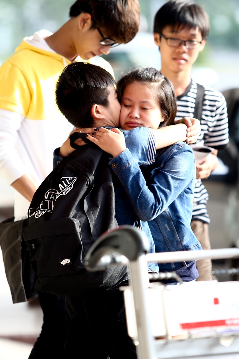 Quấn quýt không rời mọi người nên dù đã vào khu vực làm thủ tục an ninh rồi nhưng Quang Anh vẫn quay ra rối rít vẫy tay chào hỏi...