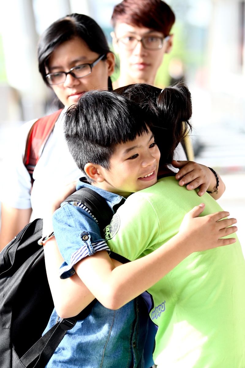 Tôn Chí Long cũng có mặt ở sân bay trên cùng một chuyến xe với gia đình Quang Anh và Thu Hà. Cậu nhóc ra tiễn hai người bạn thân cùng trong team của HLV Hồ Hoài Anh và Lưu Hương Giang. Ba nhóc tỳ sẽ còn tái ngộ khi cùng vào Sài Gòn nhận học bổng trị giá 108 triệu.