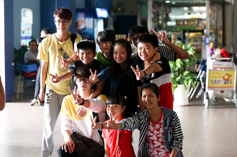 Sự xuất hiện của Quang Anh - Thu Hà và Chí Long khiến một góc sân bay Tân Sơn Nhất sôi động hơn hẳn ngày bình thường.