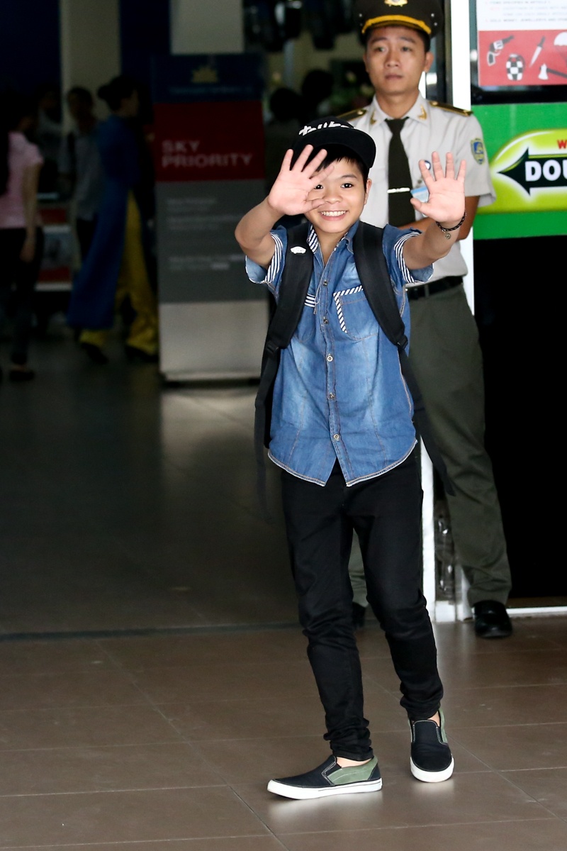 Có mặt ở sân bay Tân Sơn Nhất lúc 6h sáng, trong khi Thu Hà ngơ ngác nhìn ngó xung quanh thì Quang Anh hồ hởi gặp gỡ các fan ruột đã ủng hộ cậu nhóc suốt những tháng tranh tài vừa qua. Theo tiết lộ của bạn bè, cậu nhóc này là một trong số những siêu quậy của Giọng hát Việt nhí khi liên tục đầu trò đủ chuyện.