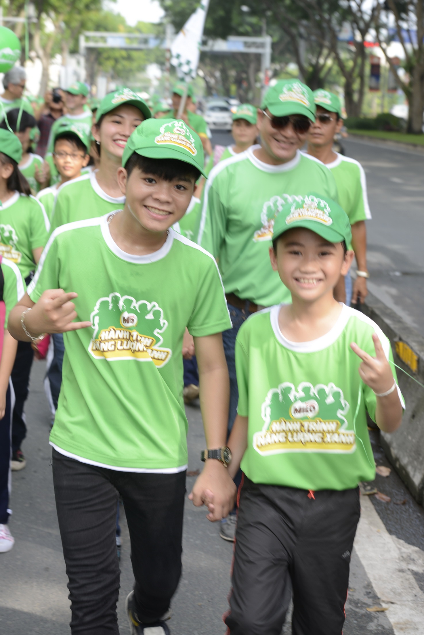 Quán quân "Giọng hát việt nhí" 2013 trổ tài chơi bóng rổ và bóng đá điệu nghệ trong ngày hội đi bộ gây quỹ vì thể thao, đồng thời tặng 100 chiếc nón có chữ ký của mình cho các bạn.