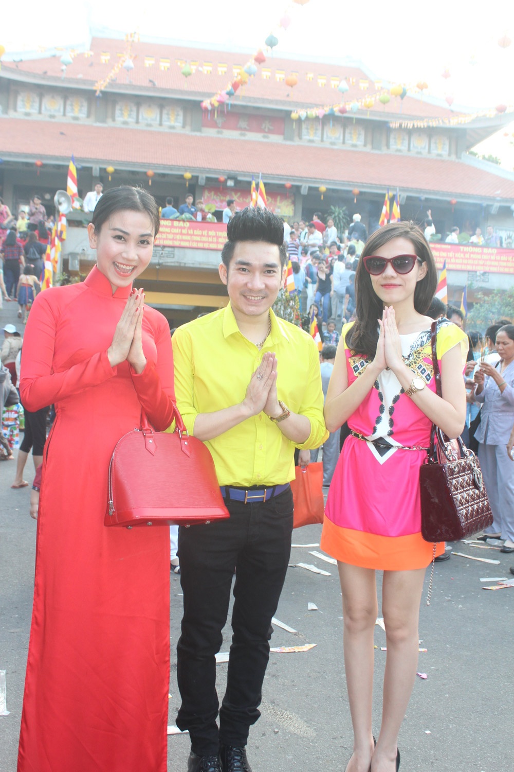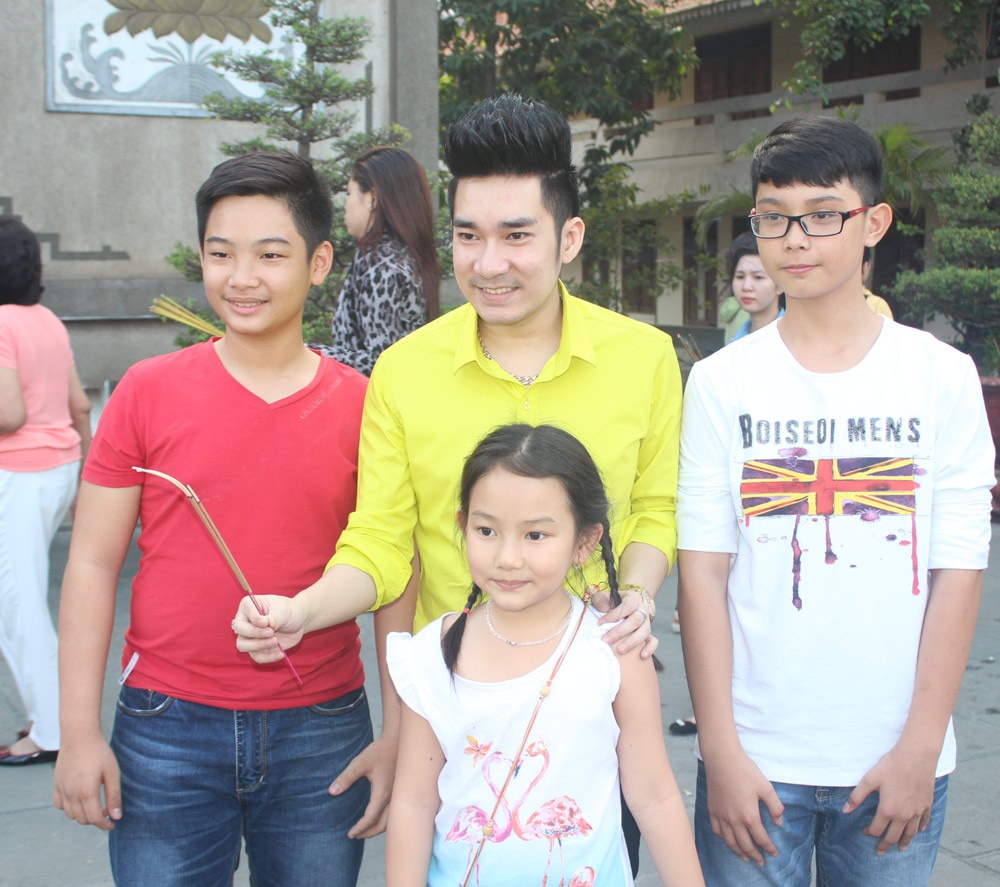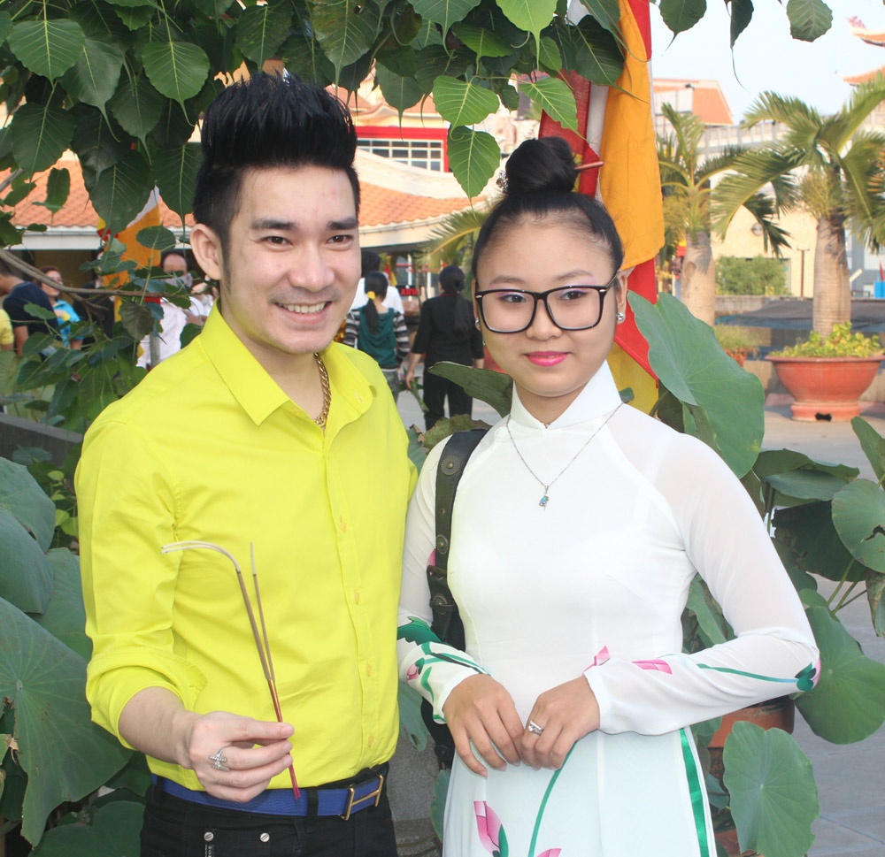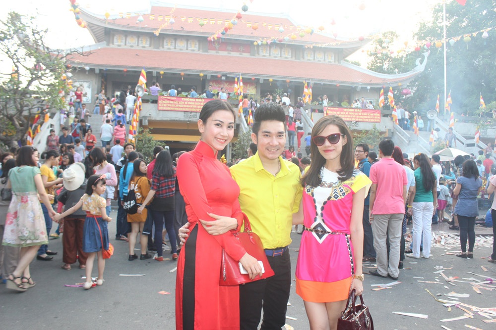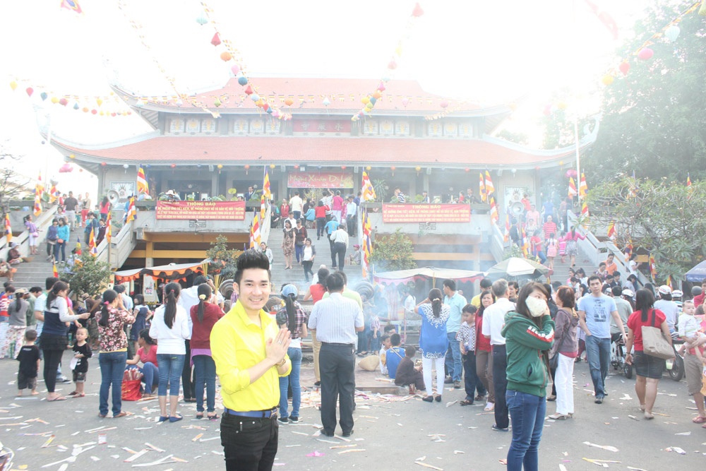 Ngày đầu năm mới, nam ca sĩ "Ngỡ" rủ bạn bè, người thân đi chùa cầu bình an cho cả năm. Khi đi lễ tại chùa Vĩnh Nghiêm, TP.HCM anh vui khi gặp MC Quỳnh Hoa và em gái Thanh Thảo.