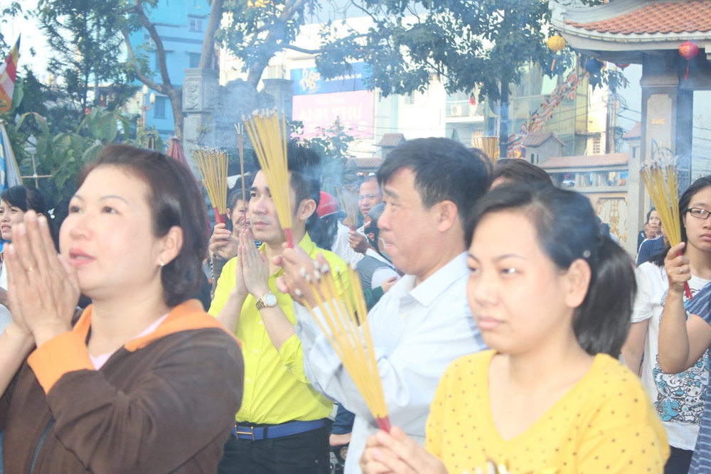 Nam ca sĩ hòa cùng dòng người thắp hương cầu may.