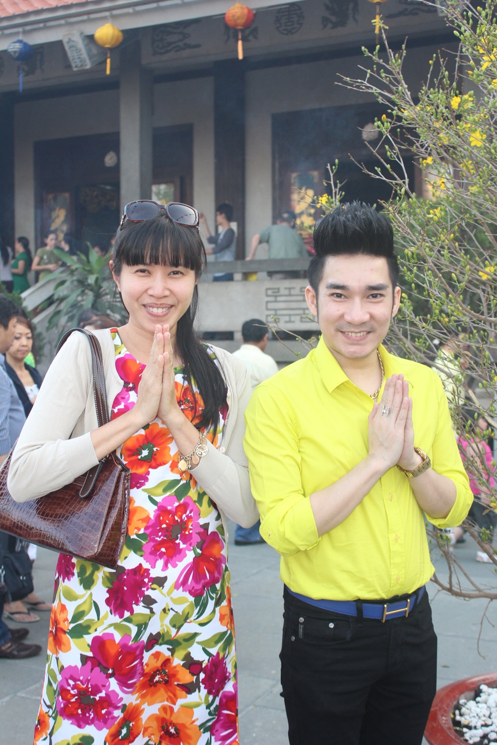Quang Hà và Thụy Anh đi chùa cầu may đầu năm