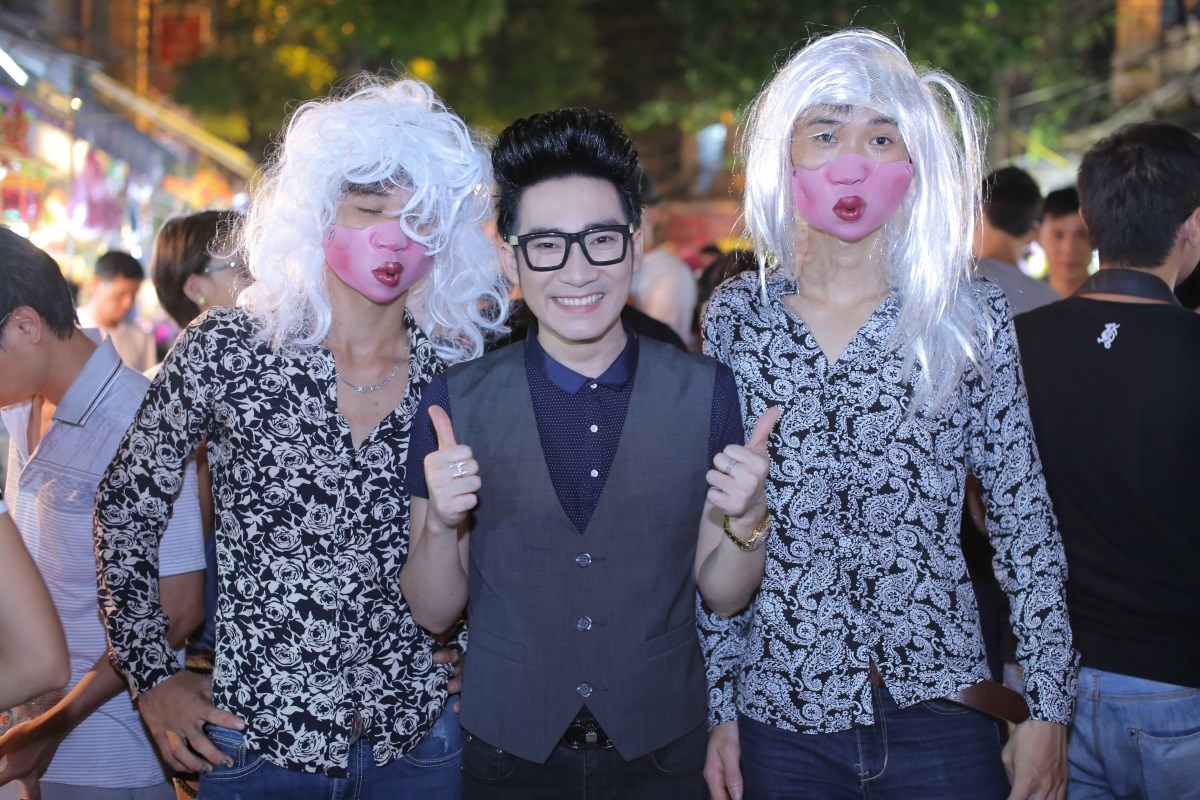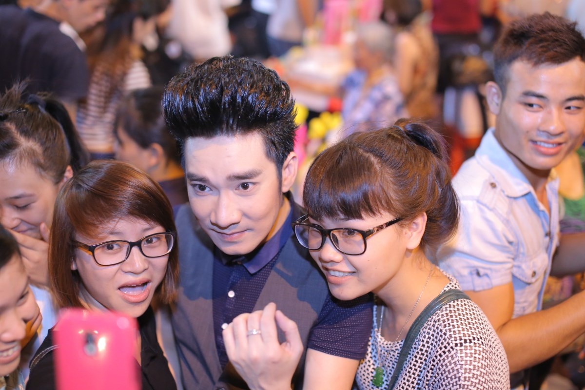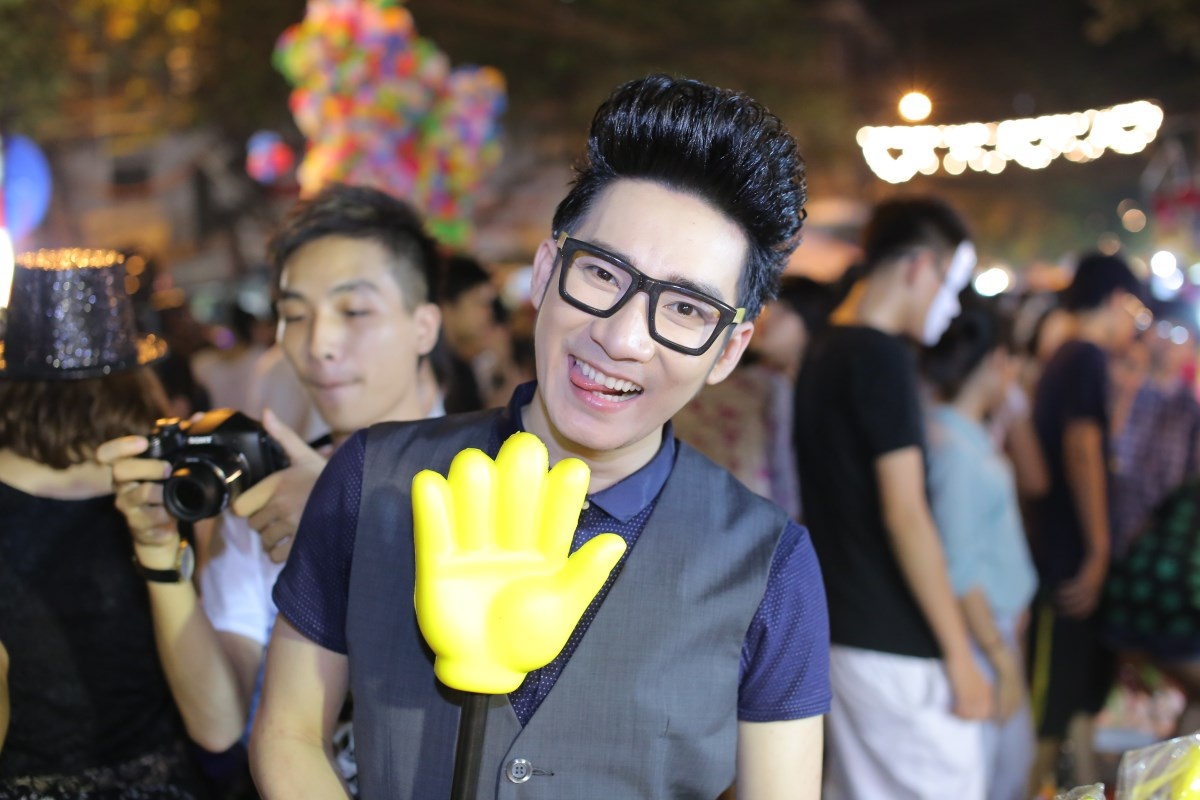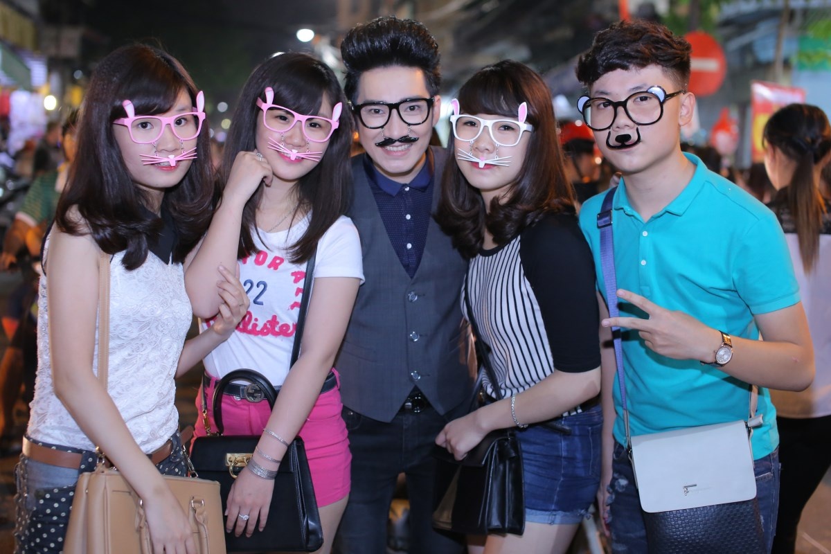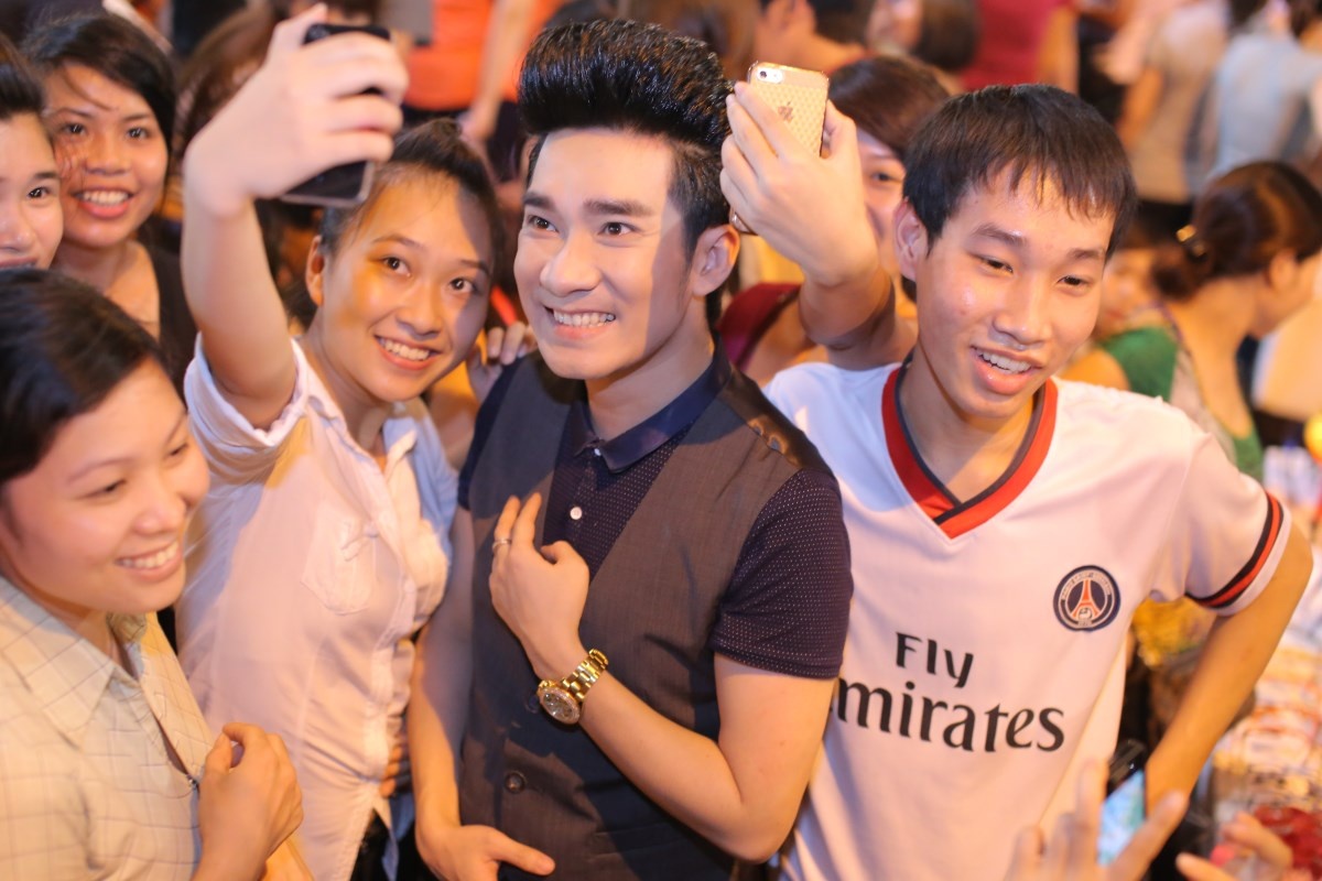 | Tạm gác những lo toan cho show diễn riêng, anh đã hòa mình vào dòng người từ khắp nơi đổ về con phố Hàng Mã và vui vẻ chụp hình cùng fan. |