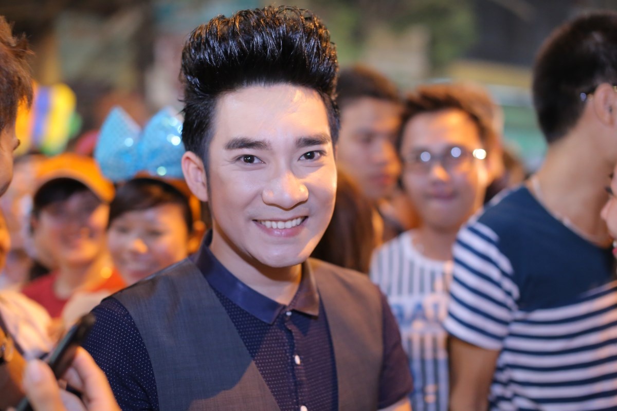 | Vừa xuất hiện tại con phố Hàng Mã, Quang Hà đã gây sự chú ý của khán giả và fan bằng nụ cười rất thân thiện. |