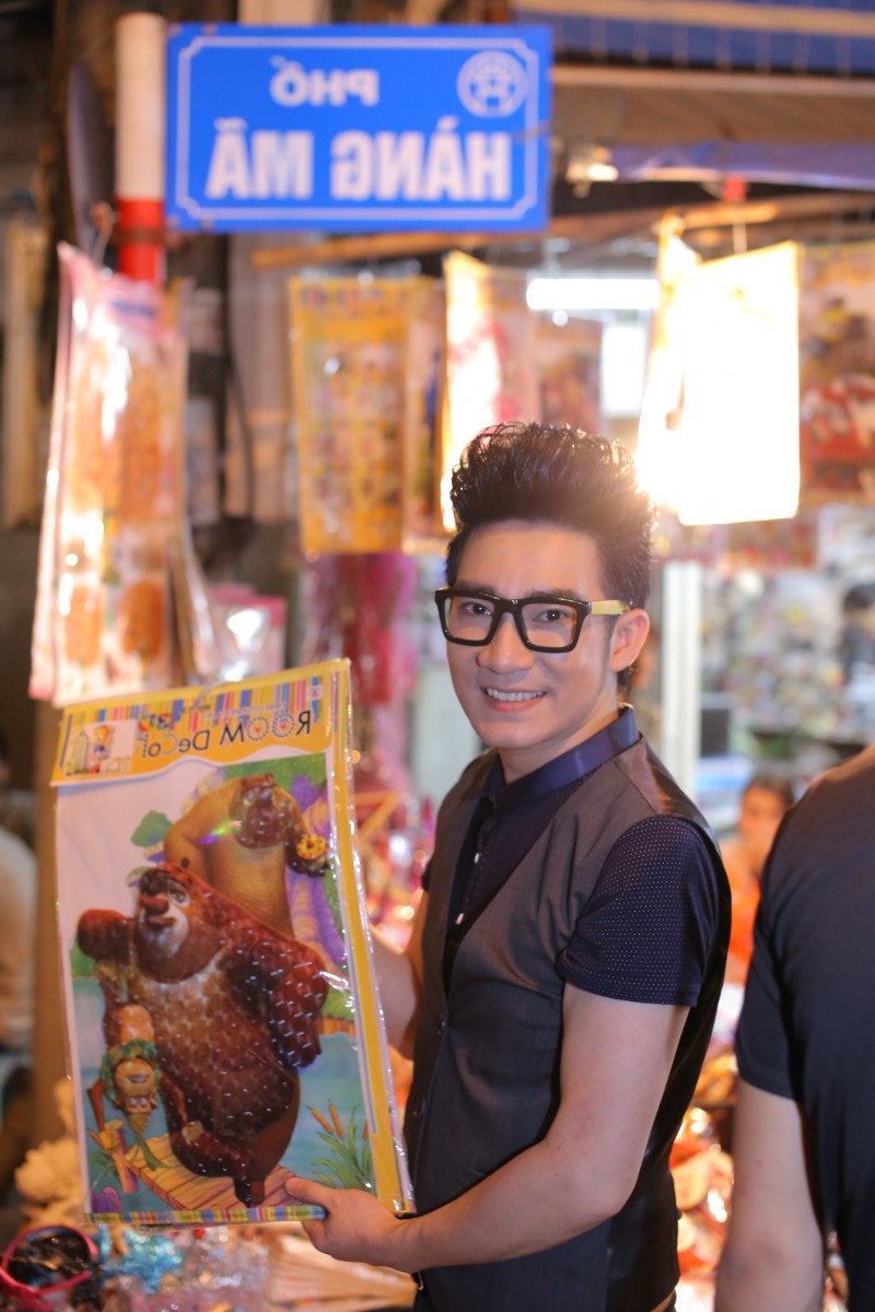 | Quang Hà thích thú với nhiều phụ kiện tại phố Hàng Mã. |