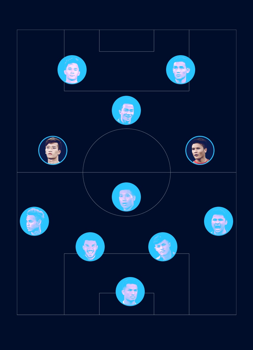 Không thể giúp đội tuyển Việt Nam bảo vệ ngôi vương Đông Nam Á nhưng Nguyễn Quang Hải và Nguyễn Hoàng Đức xứng đáng góp mặt ở đội hình hay nhất giải đấu do Zing bình chọn.