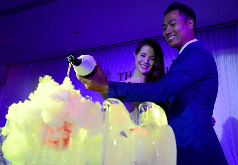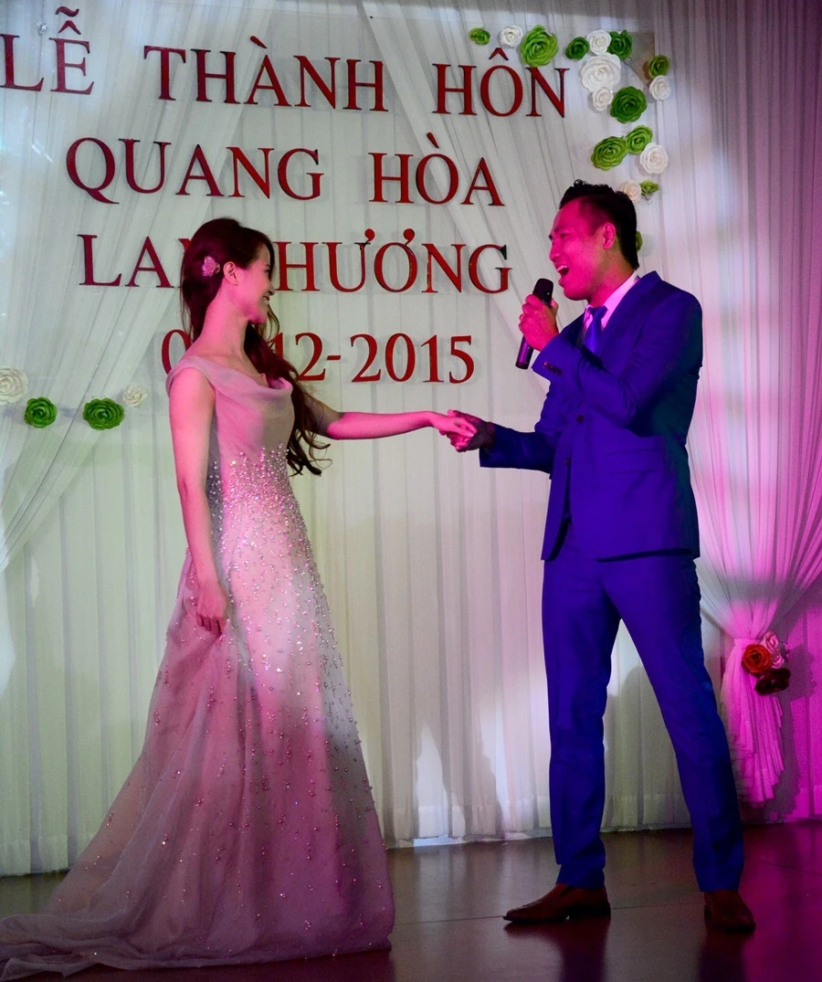 | Lễ cưới của Quang Hòa diễn ra tại không gian sang trọng ấm cúng ở một trung tâm tiệc cưới ở TP HCM. |