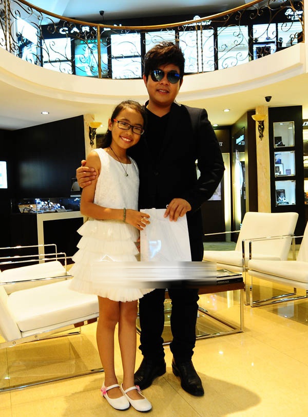 | Trưa ngày 14/10, nhân sự kiện gặp gỡ cùng gia đình của Phương Mỹ Chi, Quang Lê đã dẫn cô bé đi sắm đồng hồ. Giọng ca nhí rất thích thú khi được tặng chiếc đồng hồ mới màu hồng xinh xắn có giá gần 2 triệu đồng. |