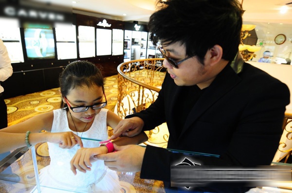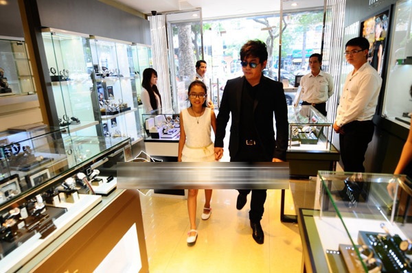 Nam ca sĩ hải ngoại đưa giọng ca nhí đi sắm đồng hồ hiệu Guess màu hồng ở một trung tâm tại TP.HCM, còn anh sở hữu chiếc Sarcar trị giá đến 3 tỷ đồng.