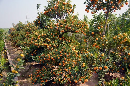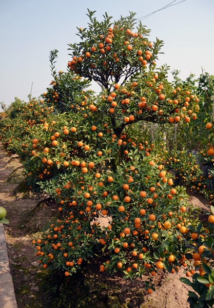 Ghi nhận của PV tại Quảng An, Tứ Liên (Tây Hồ, Hà Nội), hầu hết các vườn quất đều đang vào độ chín rộ. Thỉnh thoảng, có cây vẫn điểm những quả xanh, hoa trắng nhưng nhìn chung các chủ vườn đã sẵn sàng cho quất xuống phố đón Tết.