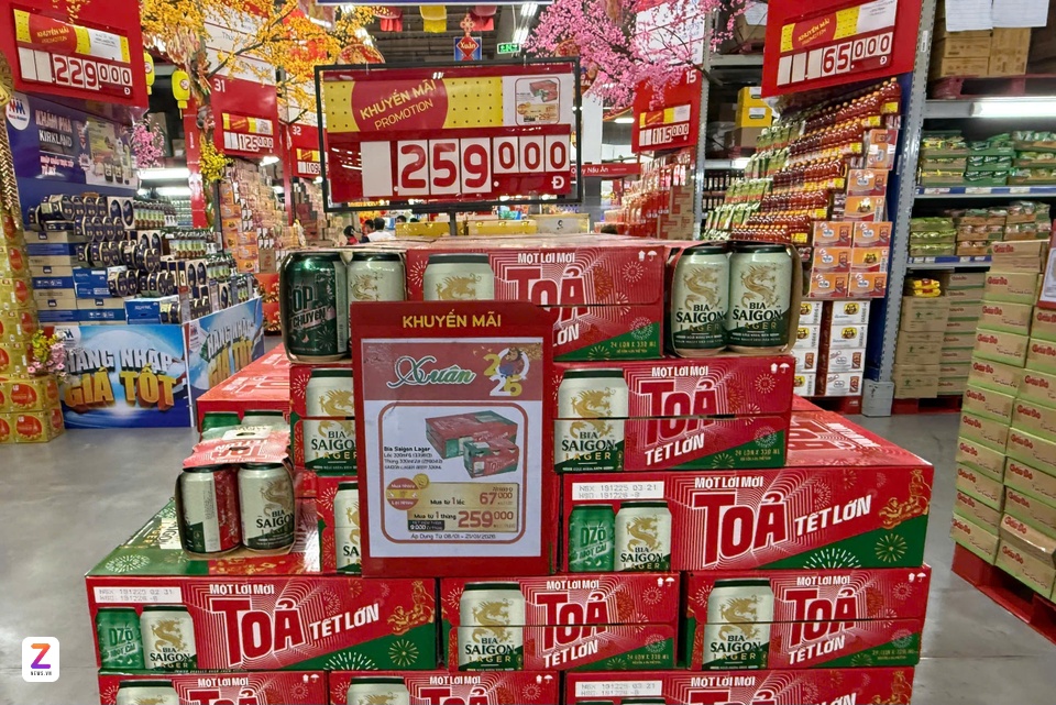 Còn hệ thống Tops Market hiện bán bia Sài Gòn Special giá 339.400 đồng/thùng, Heineken Silver 250 ml 363.500 đồng/thùng, Tiger Crystal 393.000 đồng/thùng, Tiger lon cao 352.500/thùng. Nhân viên cũng nói thêm chương trình chỉ áp dụng đến ngày 28/1 để phục vụ nhu cầu trong mùa bóng đá và khách sắm Tết, sau đó có thể tăng giá trở lại.