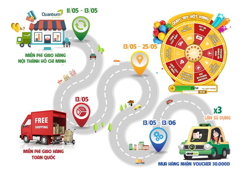 Chương trình Quay liền tay, hốt ngay vàng với cách thức chơi đơn giản và quen thuộc chắc chắn sẽ mang đến cho bạn những phút giây vui vẻ. Với mỗi lượt quay may mắn, bạn có thể trở thành chủ nhân của nhiều phần quà như 13 chỉ vàng SJC, 13 gói truyền hình FPT + HD Box... Tổng giá trị giải thưởng lên đến 3 tỷ đồng. Bạn cũng có cơ hội nhận ngay quà tặng là hơn 60.000 voucher mua sắm thời trang hấp dẫn và thú vị.