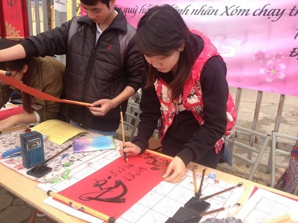 Với mong muốn gây quỹ cho bệnh nhân ở xóm chạy thận đón tết an vui, một nhóm sinh viên đã tổ chức sự kiện “Viết chữ đầu xuân” với các sản phẩm thư pháp đồng giá 30.000 đồng.
