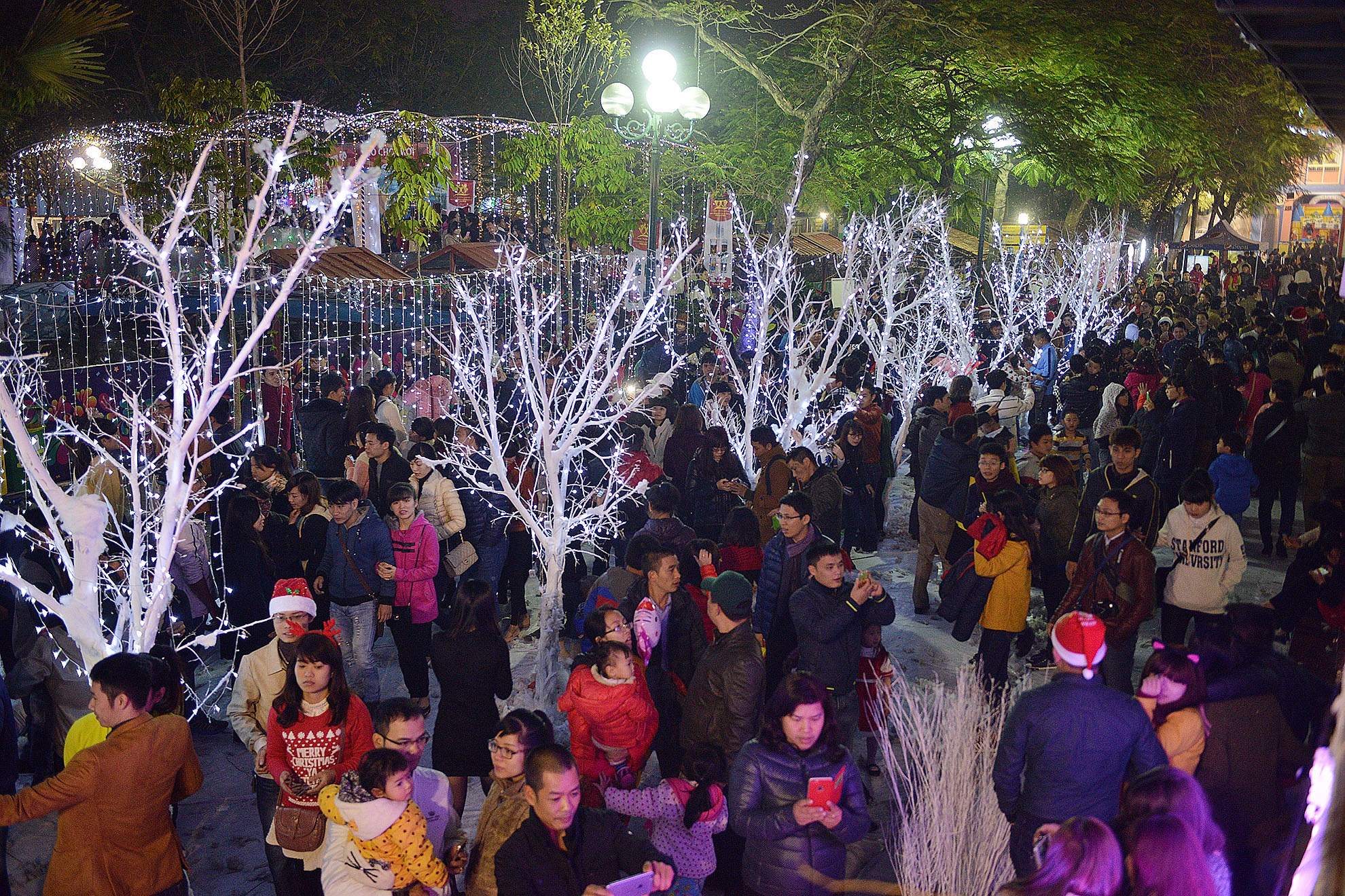 | Con đường tuyết lần đầu tiên được thiết kế tại Hà Nội thu hút đông đảo giới trẻ đến chụp ảnh, chiêm ngưỡng. Ảnh: Lê Hiếu. |