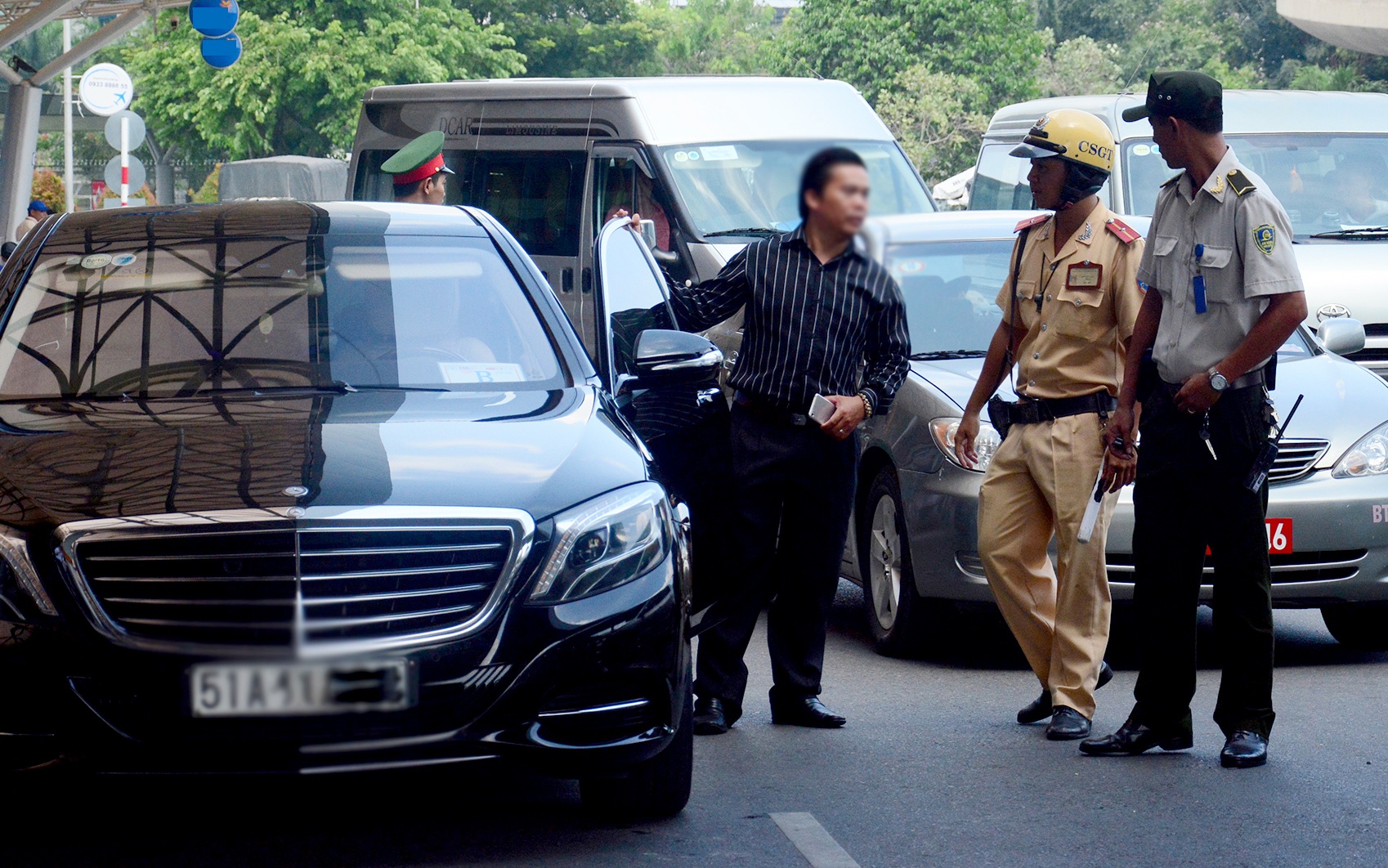 Chiếc xe dân sự khác đậu trước cửa sảnh cửa ra. Nhân viên an ninh sân bay và CSGT thổi nhiều hồi còi tài xế mới xuất hiện.