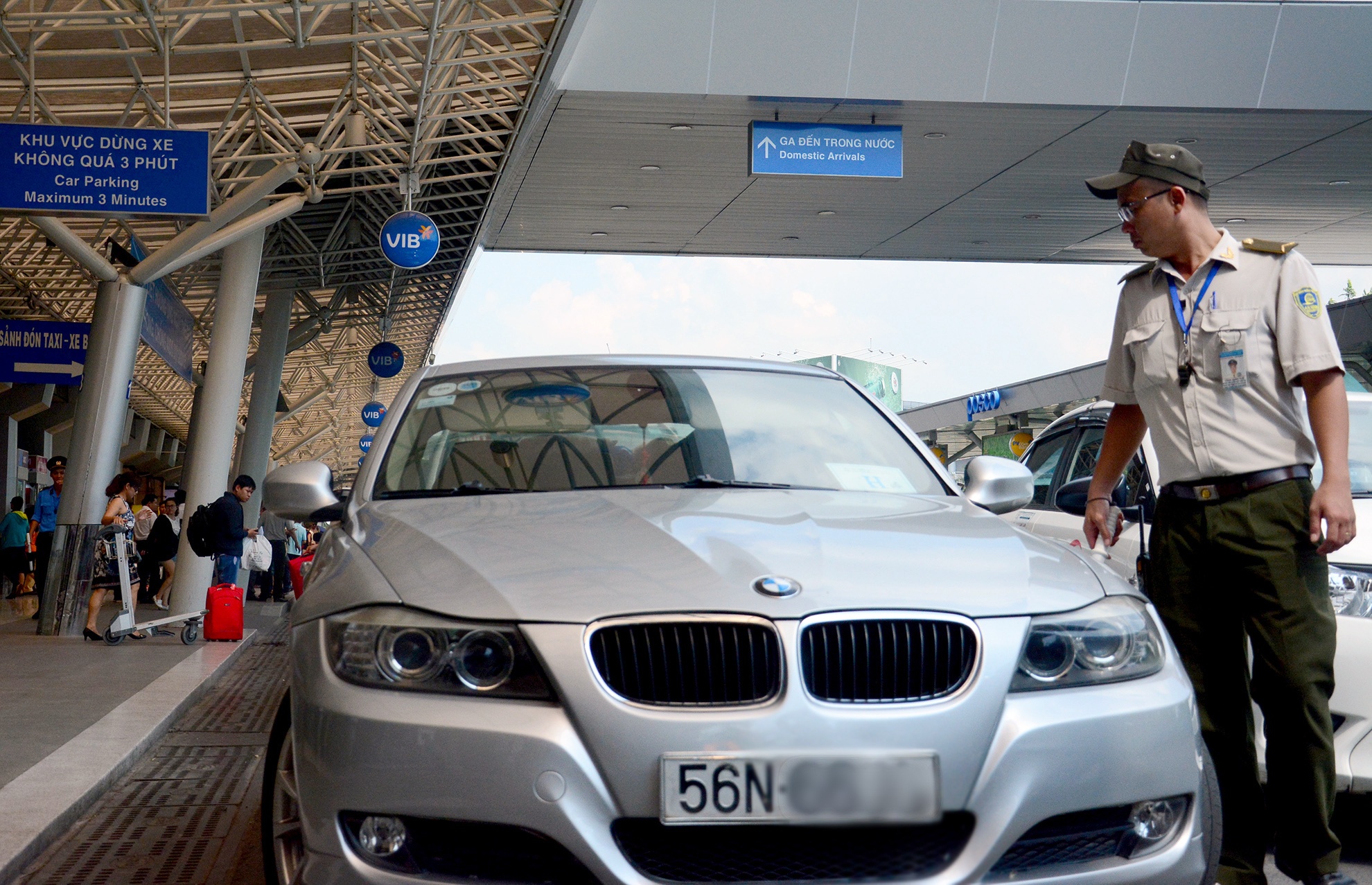 Dù trước nhà ga có đặt bảng khu vực đón khách xe chỉ được dừng 3 phút, nhưng chiếc BMW có dán bảng công vụ sau lớp kính vẫn đỗ khá lâu. Bên trong không có người.