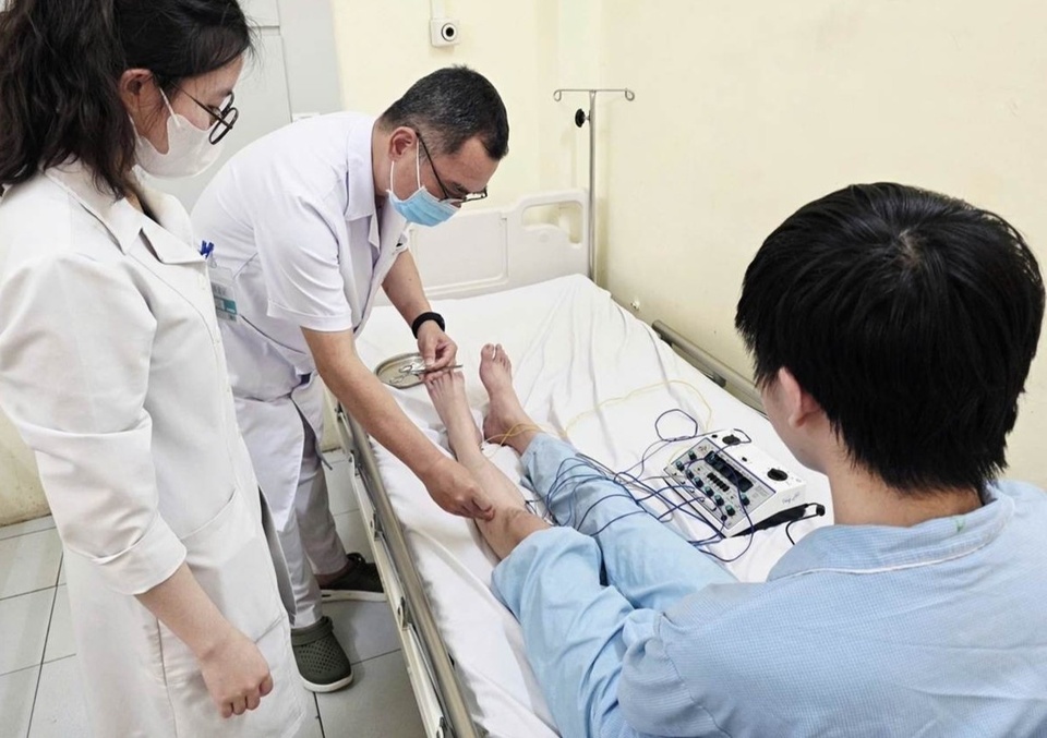 Tại khoa Y học cổ truyền, người bệnh 19 tuổi được điều trị theo hướng kết hợp giữa y học hiện đại và y học cổ truyền. Phác đồ bao gồm sử dụng thuốc chống viêm, bổ sung vitamin nhóm B (B1, B6, B12), kết hợp châm cứu, điện châm, xoa bóp bấm huyệt vùng cẳng chân, dùng thuốc y học cổ truyền phù hợp thể trạng và tập phục hồi chức năng. Không chỉ tập trung điều trị thể chất, đội ngũ y bác sĩ còn chú trọng hỗ trợ tâm lý cho người bệnh.